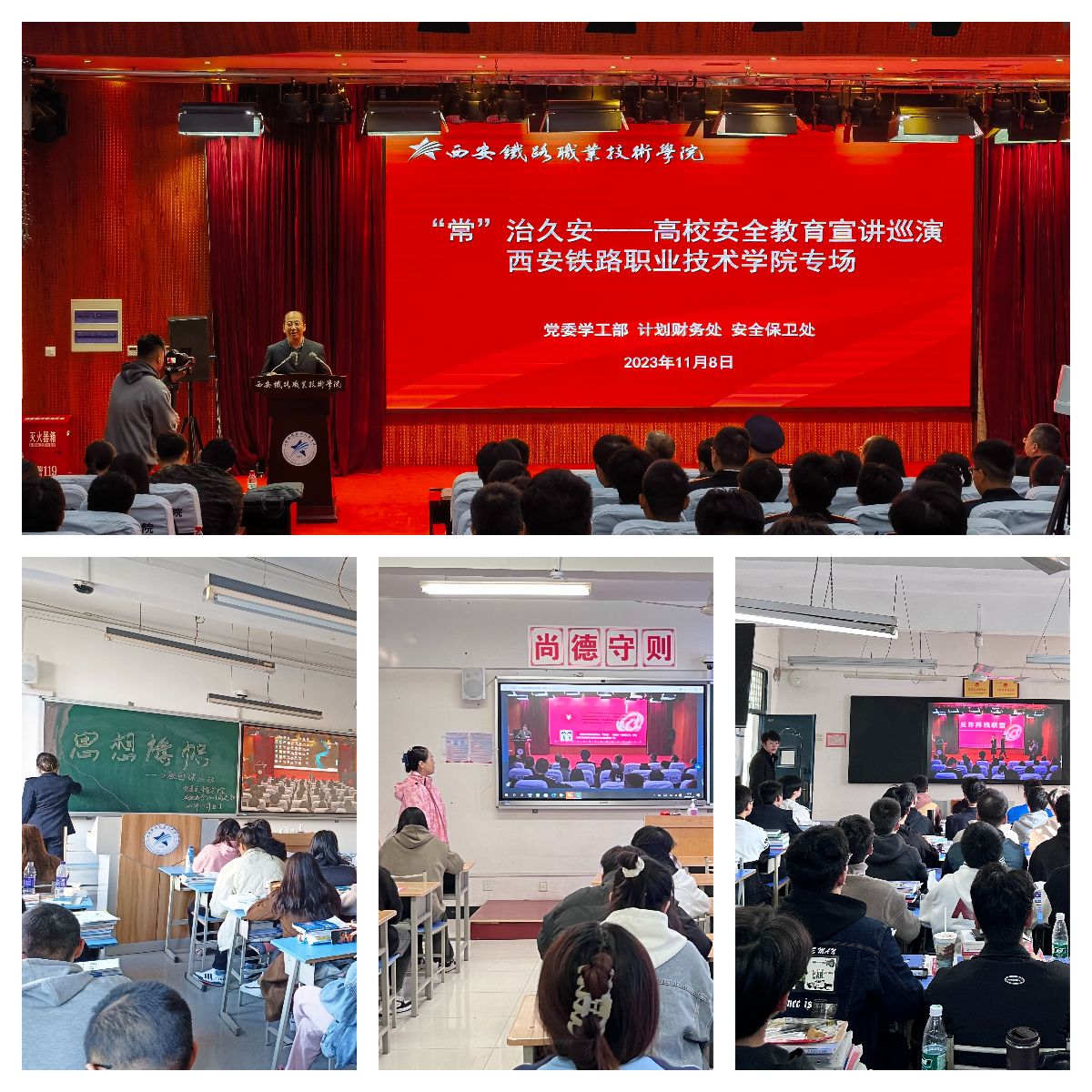 近年来,电信诈骗犯罪呈现出新的趋势和特点,给人民生活和安全带来了严峻的挑战。为了能够给学生提供良好的学习环境和成长平台,保护同学们人身财产安全,创建平安学生社区,11月8日,由学院党委学生工作部、计划财务处、安全保卫处联合承办,邀请陕西广电融媒体集团文艺中心、公安灞桥分局、建设银行走进校园,警、媒、银、校四方联动,在港务校区报告厅举办了“常”治久安——高校安全教育宣讲巡演专场活动。学院党委副书记任治军,党委学生工作部部长李栋、副部长孟永辉,安全保卫处处长毛卫军,港务校区各二级学院党总支书记、学工办主任、辅导员和部分学生代表在主会场参加活动,同时在各校区教室设置分会场进行直播,全校16000余名师生线上线下同步观看了宣讲巡演。活动由党委学生工作部部长李栋主持。