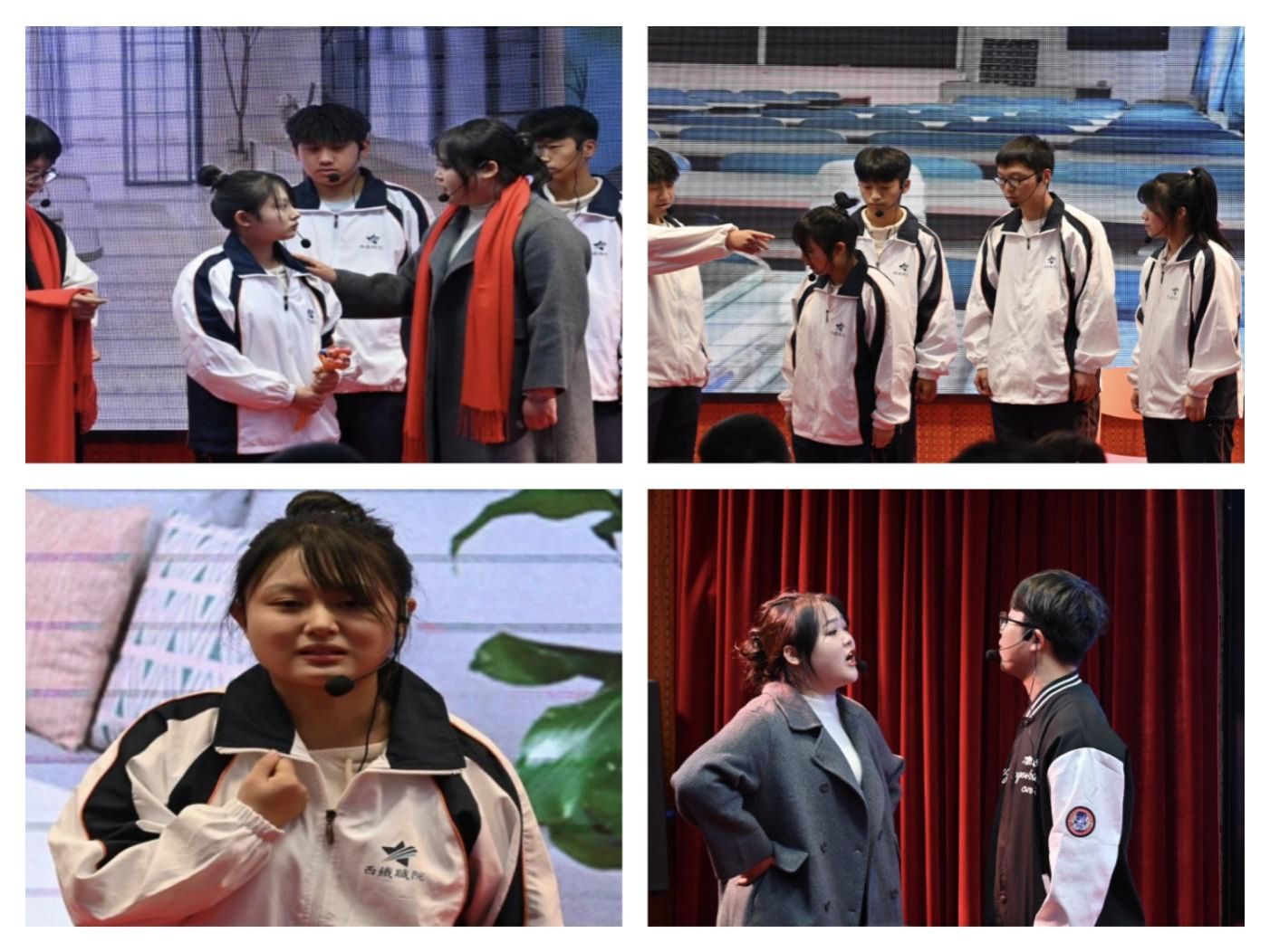 在各二级院部精心组织、用心指导下,经过初赛选拔共推选出8部优秀剧目进入了校园心理剧决赛。大赛现场每支队伍都表现出色,将各自的思考和感悟演绎得淋漓尽致。剧作内容分别从大学生的亲子关系、人际冲突、情绪调节、环境适应、个人成长等心理问题出发,选题丰富且具有深度,引发大学生的心灵共鸣。