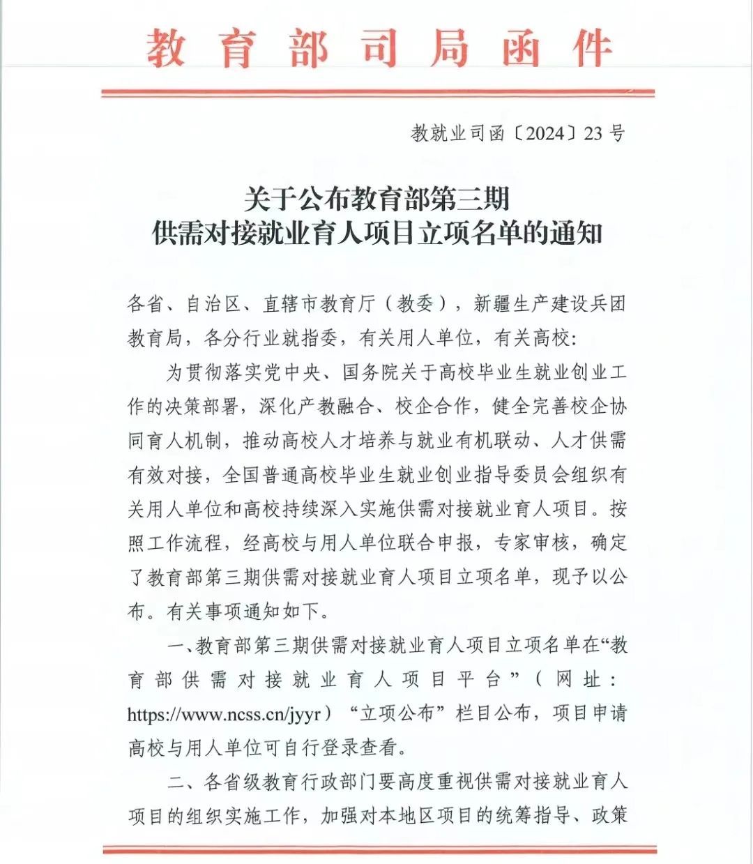 6月14日,全国普通高校毕业生就业创业指导委员会和教育部高校学生司(高校毕业生就业服务司)下发《关于公布教育部第三期供需对接就业育人项目立项名单的通知》(教就业司函〔2024〕23号),临潼校区与陕西创美数码科技有限公司联合申报的“铁道工程技术就业实习基地项目”、与西安三好软件技术股份有限公司联合申报的“校企合作共建1+X建筑施工工艺(土建施工方向)职业技能人才培养模式”2个就业育人项目获批立项。