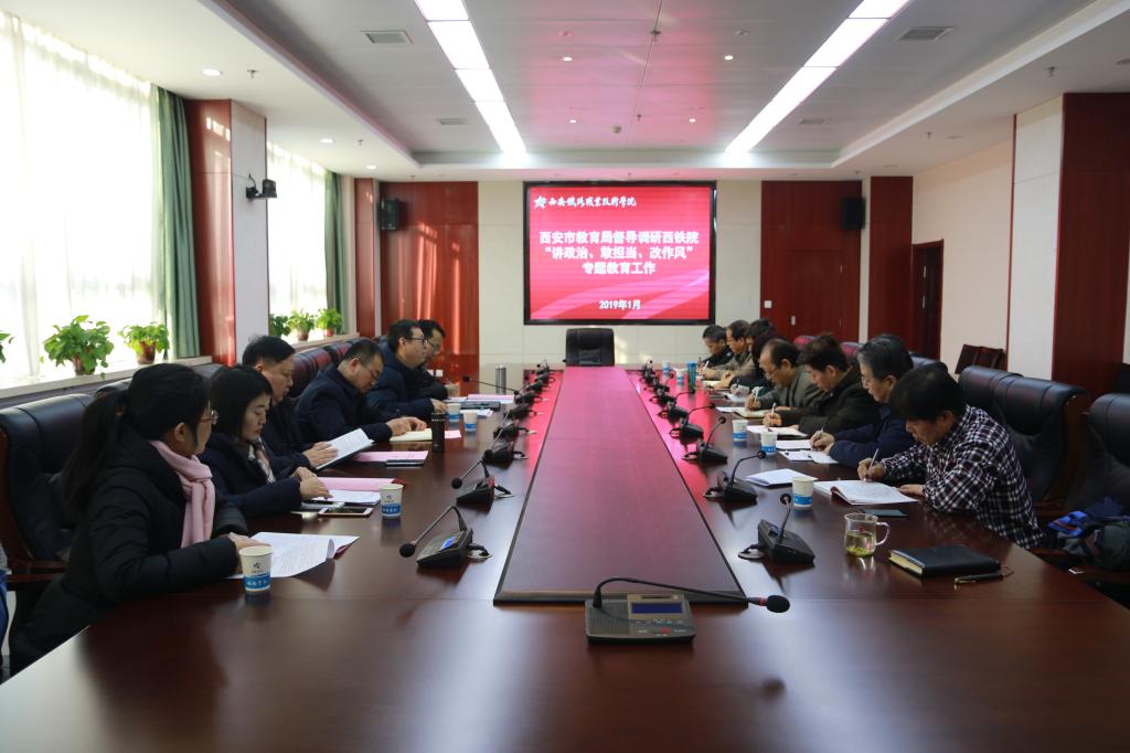 1月21日上午,西安市教育局“讲政治、敢担当、改作风”专题教育督导工作组一行6人对纽约国际最新官方网站“讲政治、敢担当、改作风”专题教育开展情况进行了督导检查。学院“讲、敢、改”工作领导小组成员、二级学院党总支书记参加了会议。