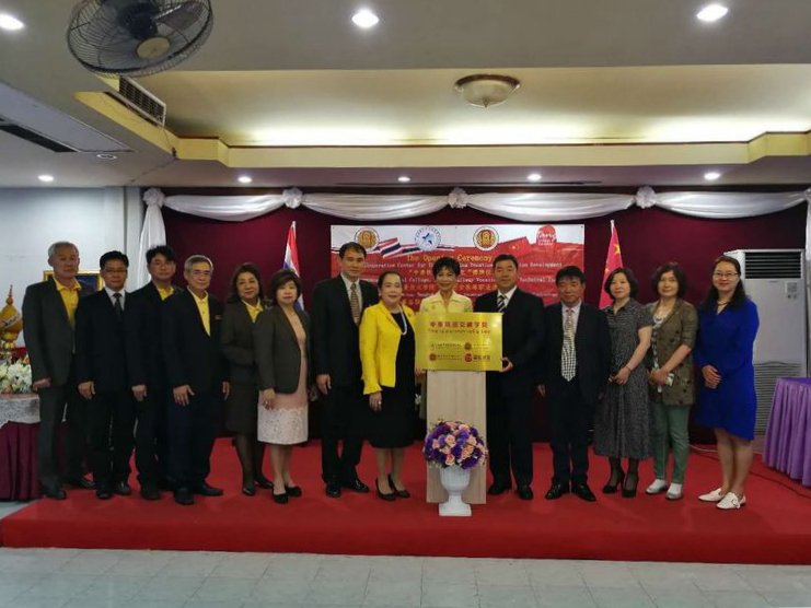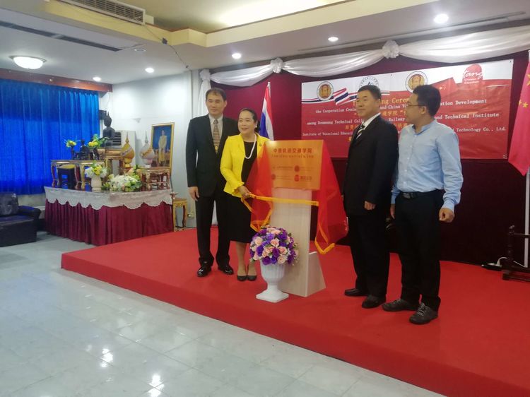 4月26日上午,纽约国际最新官方网站与曼谷职教中心联合成立的中泰轨道交通学院在曼谷廊曼技术学院揭牌。副院长安学武、曼谷职教中心波帮松女士、唐风教育集团和廊曼技术学院负责人共同主持了揭牌仪式,此举标志着学院国际合作办学又一重要进展。