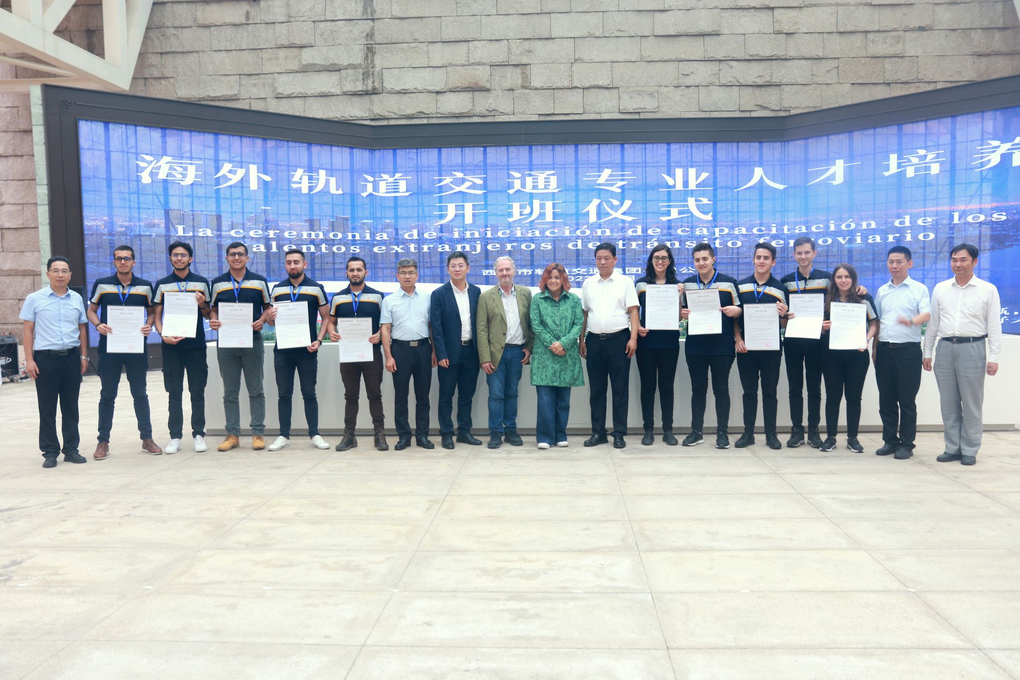 9月20日,西安市轨道交通集团“共谋发展、交通领航”海外轨道交通专业人才培养项目开班仪式在丹凤门综合交通枢纽举行,纽约国际官网院长赵春平、副院长熊奇、党委宣传部部长王琛、国际交流处处长仵崇智、交通运输学院副院长刘新强应邀参加,哥伦比亚驻华大使塞尔希奥·卡夫雷拉,西安市轨道交通集团党委副书记、副董事长、总经理马钢,中国港湾工程公司工程有限责任公司专职副总裁、波哥大地铁一号线项目公司总经理吴宇出席仪式。仪式上为首批10名哥伦比亚波哥大地铁1号线海外学员颁发了纽约国际官网入学通知书。