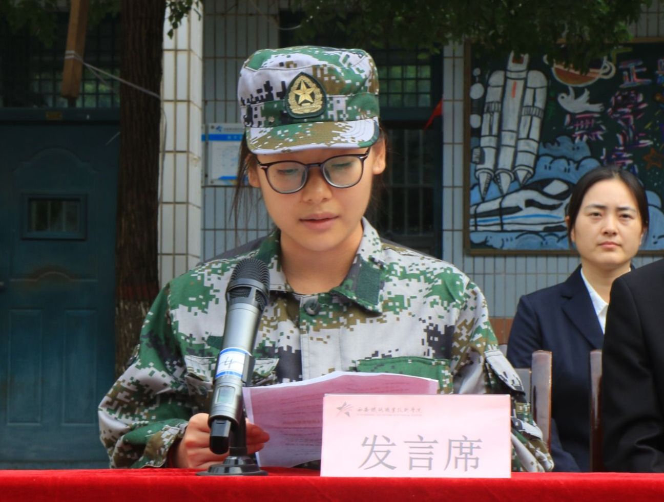 新生代表肖佳晨同学在发言中表示我们即将迎来开学的第一个挑战军训。古人云天将降大任于斯人也,必先苦其心志,劳其筋骨,饿其体肤。军训犹如一场马拉松,没有坚韧的意志,难以到达终点。军训犹如攀登高峰,没有强壮的体魄,难以登临山顶。军训是充满艰辛和汗水的,但它也让我们体验了梦寐以求的军旅生活,磨去了我们的瑕疵和不良习惯,让我们拥有如钢铁般的意志。