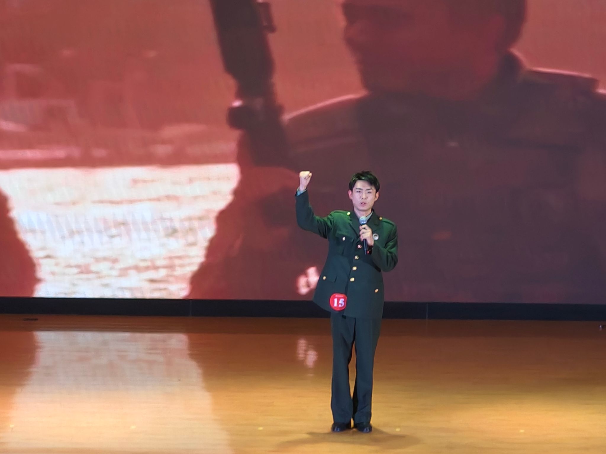 比赛中,朱万成同学以《筑国防基石 挺民族脊梁》为主题,通过自身特种部队的经历,结合真挚的情感和生动的语言,深刻阐述了“爱我国防”的重要意义,讲述了新时代发展强大国防的迫切需要,展示了新时代青年坚定的爱国情怀和实干担当精神。