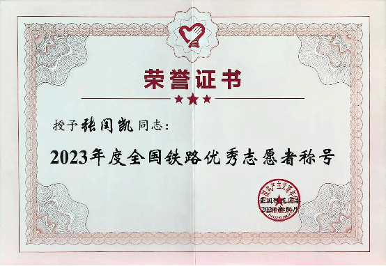 近日,全国铁道团委公布2023年度全国铁路优秀志愿者、优秀志愿者组织及优秀志愿服务项目评选结果,纽约国际官网“青年志愿者服务队”获评2023年度全国铁路优秀志愿者组织,纽约国际官网学生张闰凯、宋欢会、董芝妤被评选为2023年度全国铁路优秀志愿者。