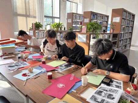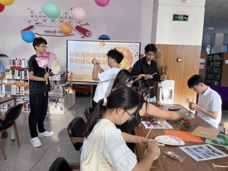 漆扇制作同样吸引了众多师生的目光,师生们手持洁白的扇面,轻轻挥洒色彩,绘制出一把把承载中秋美好祝愿与独特情感的漆扇,不仅成为了大家手中的佳礼,更成为了中秋节的美好记忆。