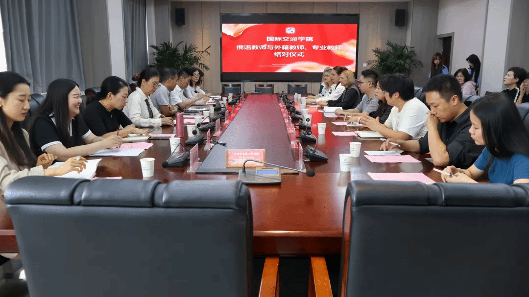 9月25日下午,国际交通学院召开俄语专职教师与外籍教师、专业教师结对仪式。本次仪式旨在通过中外教师互相学习的进度,提高双方语言水平,促进教育教学改革和师资队伍国际化发展。学院副院长滕勇、国际交通学院院长仵崇智、副院长靳丽君、各二级学院专业课教师、国际交通学院外籍教师、国际交通学院俄语教研室和国际中文教研室全体教师出席并参加此次仪式,本次结对仪式由仵崇智主持。