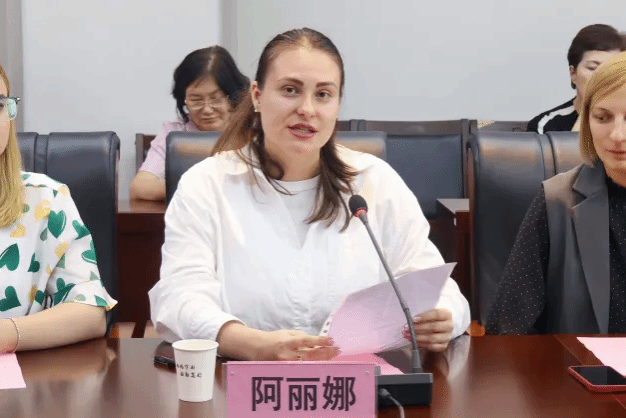 外籍教师阿丽娜发言,她表达了对此次结对活动的期待和积极参与的决心。俄语教师代表戴雪茹也进行了表态发言,表示将珍惜这次机会,同外籍教师结对学习,不断提升自己的俄语语言能力和俄语的教育教学水平。