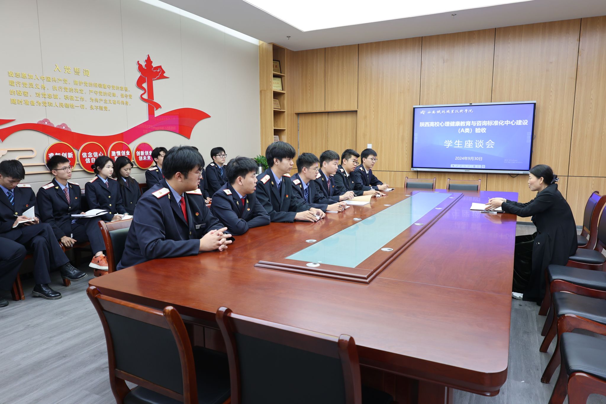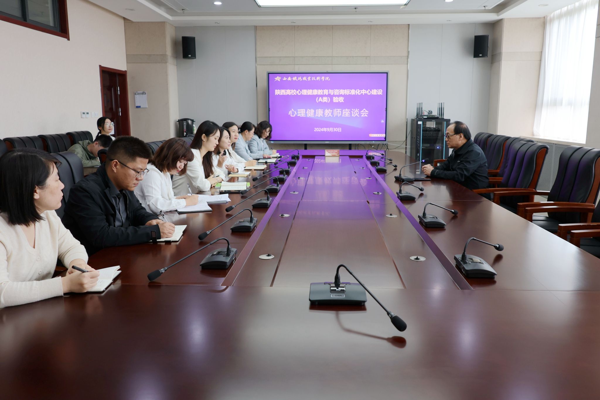 随后,专家组现场查阅了46盒心理健康教育有关工作资料,与专兼职心理健康教师、辅导员代表和学生座代表进行座谈,听取师生们对推进大学生心理健康教育工作的意见与建议。