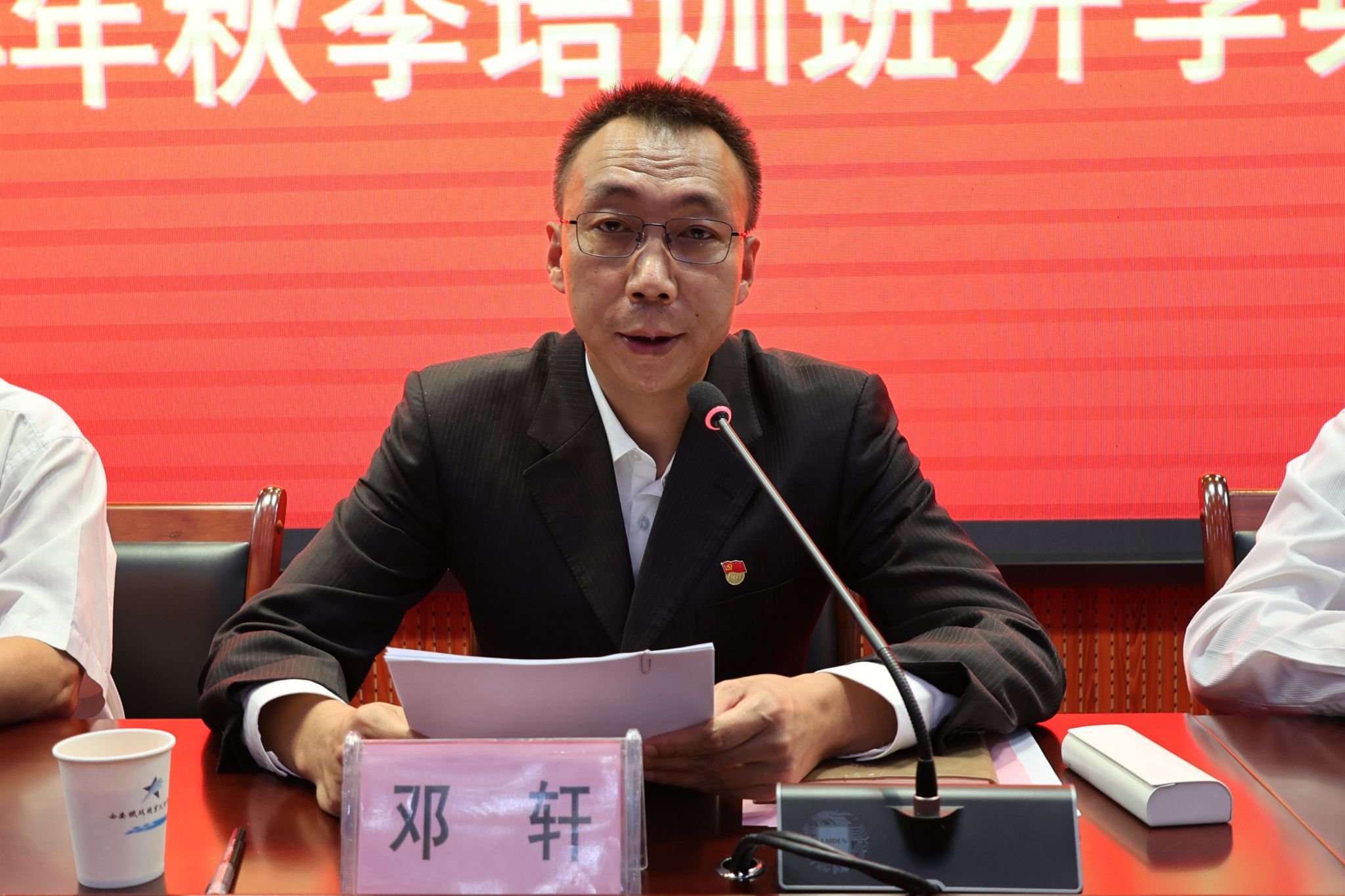 最后,邓轩对全体学员提出了几点要求:一是要求学员们明确培训目的,充分认识党校培训的重要性,端正入党动机,加强对党的百年历史的系统学习和对党的历史使命的深刻理解;二是要珍惜培训机会,全面系统学好党的基本理论,用知识武装头脑、指导实践,筑牢思想根基,锤炼政治品格,坚定爱党、护党、跟党走的决心和信心;三是要坚定理想信念,躬身笃行做新时代优秀青年,要敢想敢为、善作善成,将个人奋斗的小目标融入党和国家事业的大蓝图,进一步汇聚起推动时代前行的磅礴力量,让青春在全面建设社会主义现代化国家的火热实践中绽放绚丽之花。
