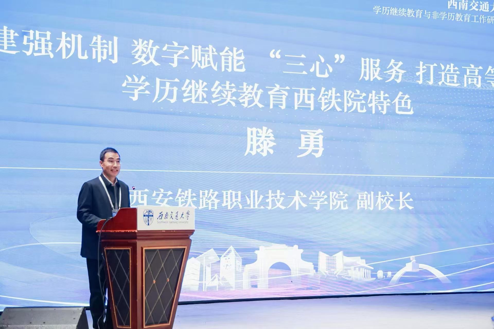 学院副院长滕勇在会上做题为《建强机制 数字赋能 “三心”服务 打造高等学历继续教育西铁院特色》的主旨发言,从体制机制建设、数字化赋能教学管理、塑造优质高效服务品牌等三个方面,向大家分享纽约国际官网高等学历继续教育办学经验。