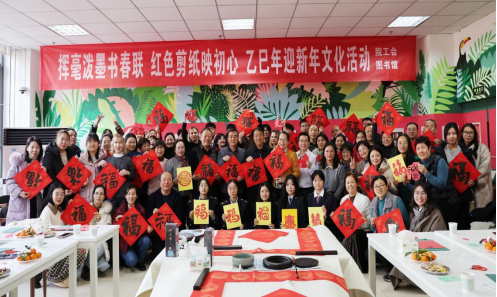 剪纸活动吸引了众多师生的参与,大家纷纷拿起剪刀和彩纸,一笔一划地认真裁剪刻画,一个个精美、独具特色的福字窗花剪纸作品在巧手中诞生。师生们或剪裁交流,或驻足观赏拍照留念,现场欢声笑语不绝于耳。