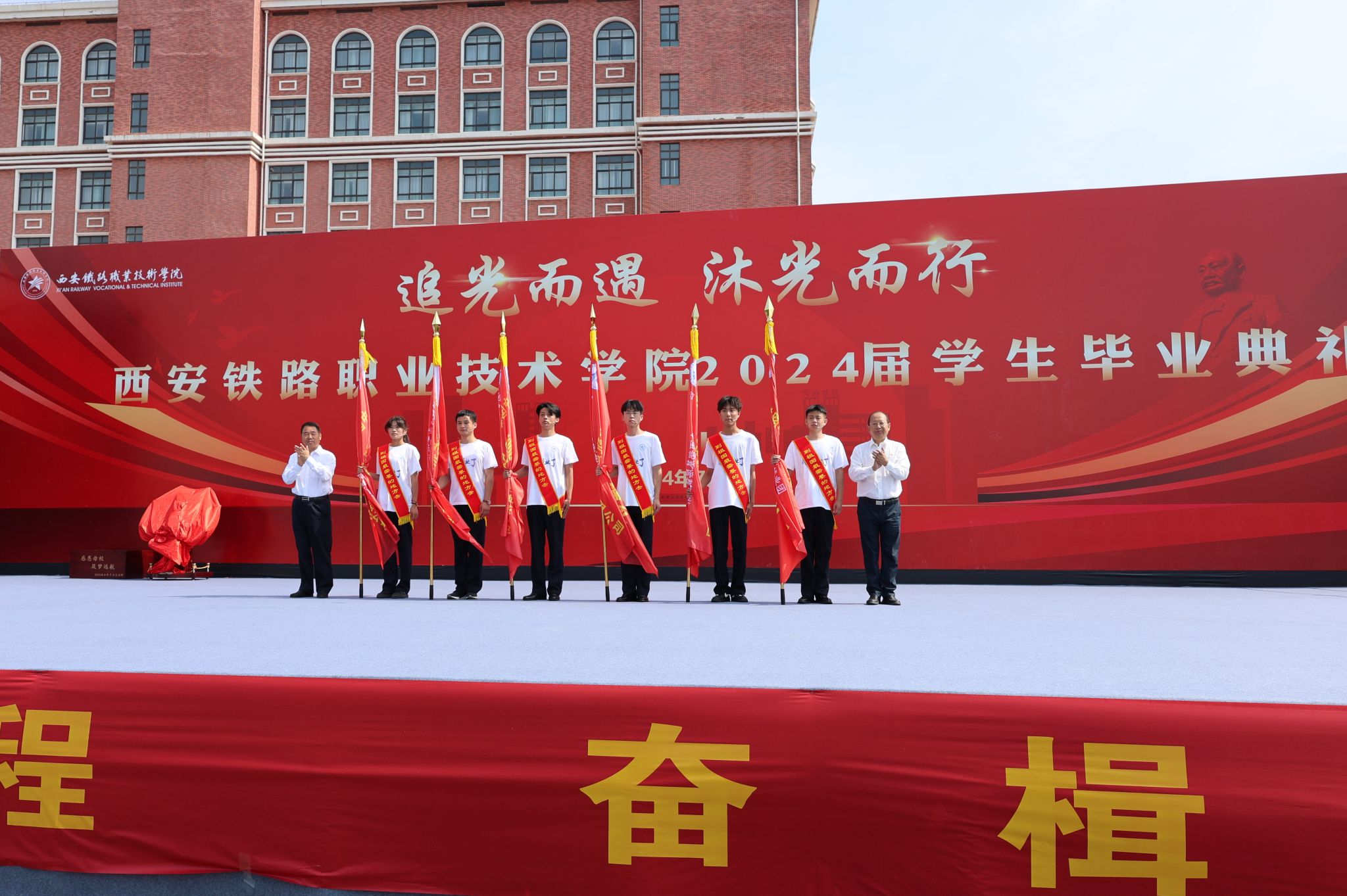 2024届学生毕业典礼上为西部基层就业的学生代表授旗