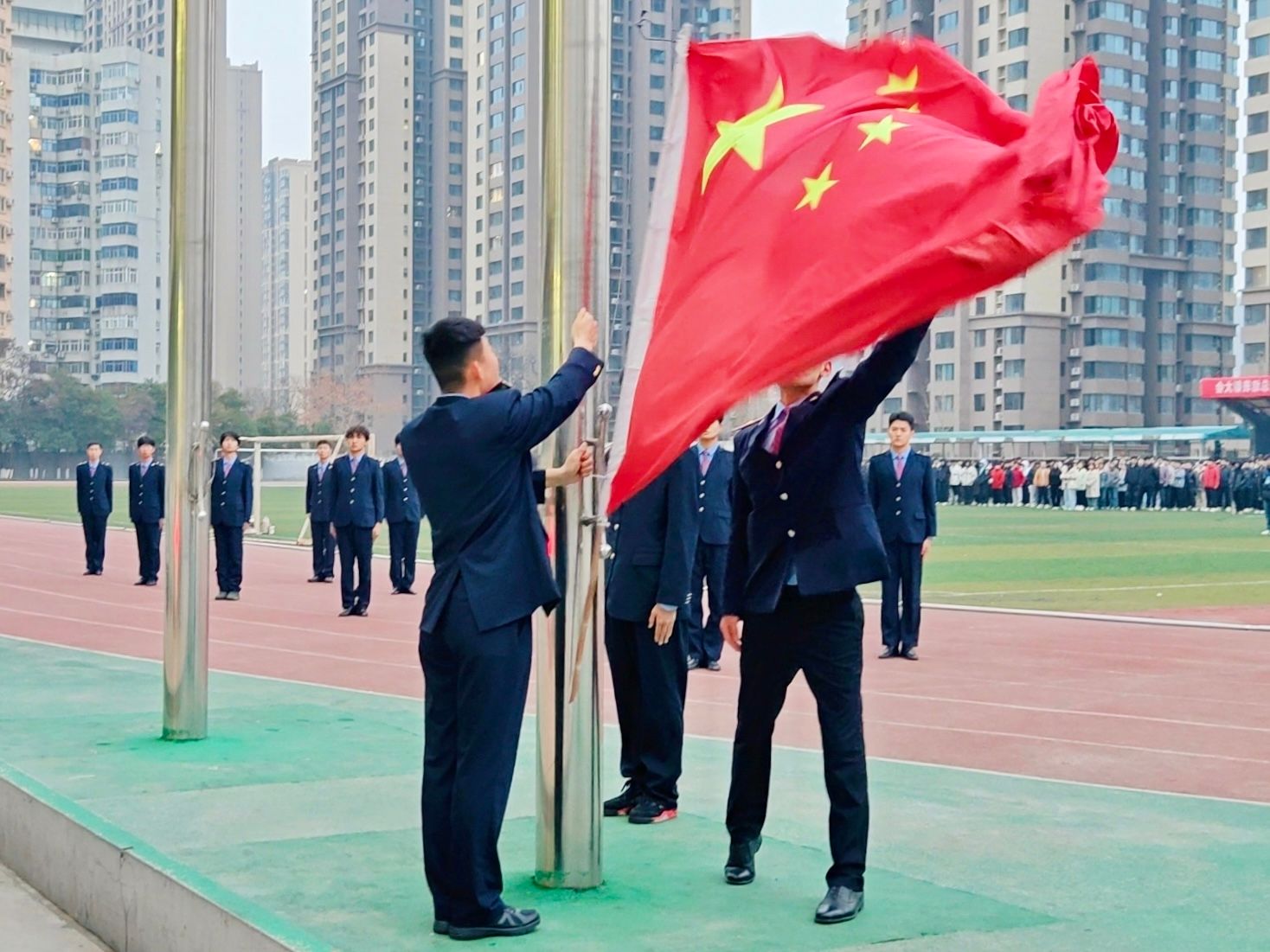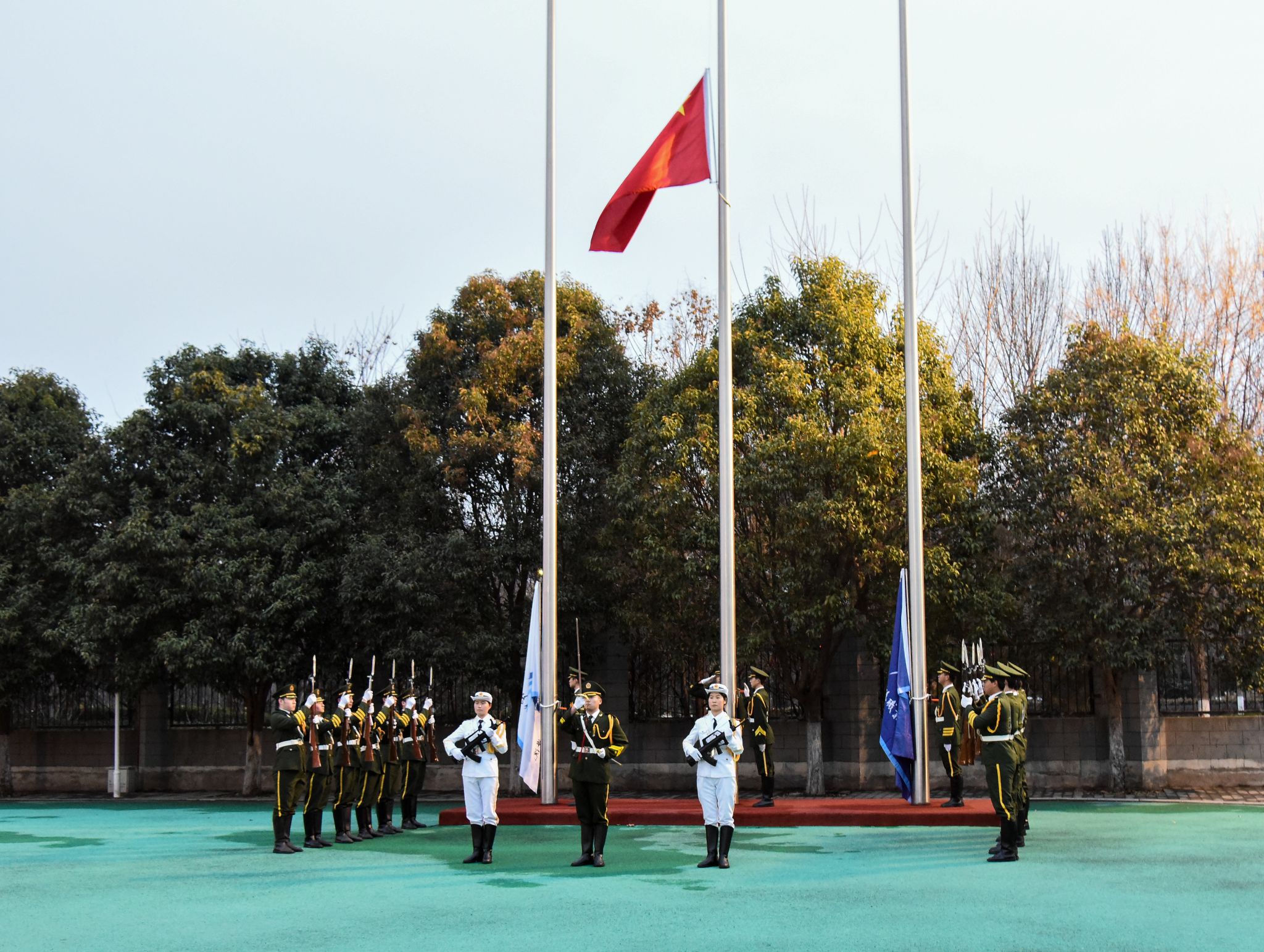早晨7点整,仪式在国旗护卫队整齐划一的步伐中拉开帷幕,伴随着雄壮的国歌声,鲜艳的五星红旗冉冉升起,全体师生肃立注目,表达对祖国的崇高敬意。随后,院旗在激昂的院歌声中缓缓升起。