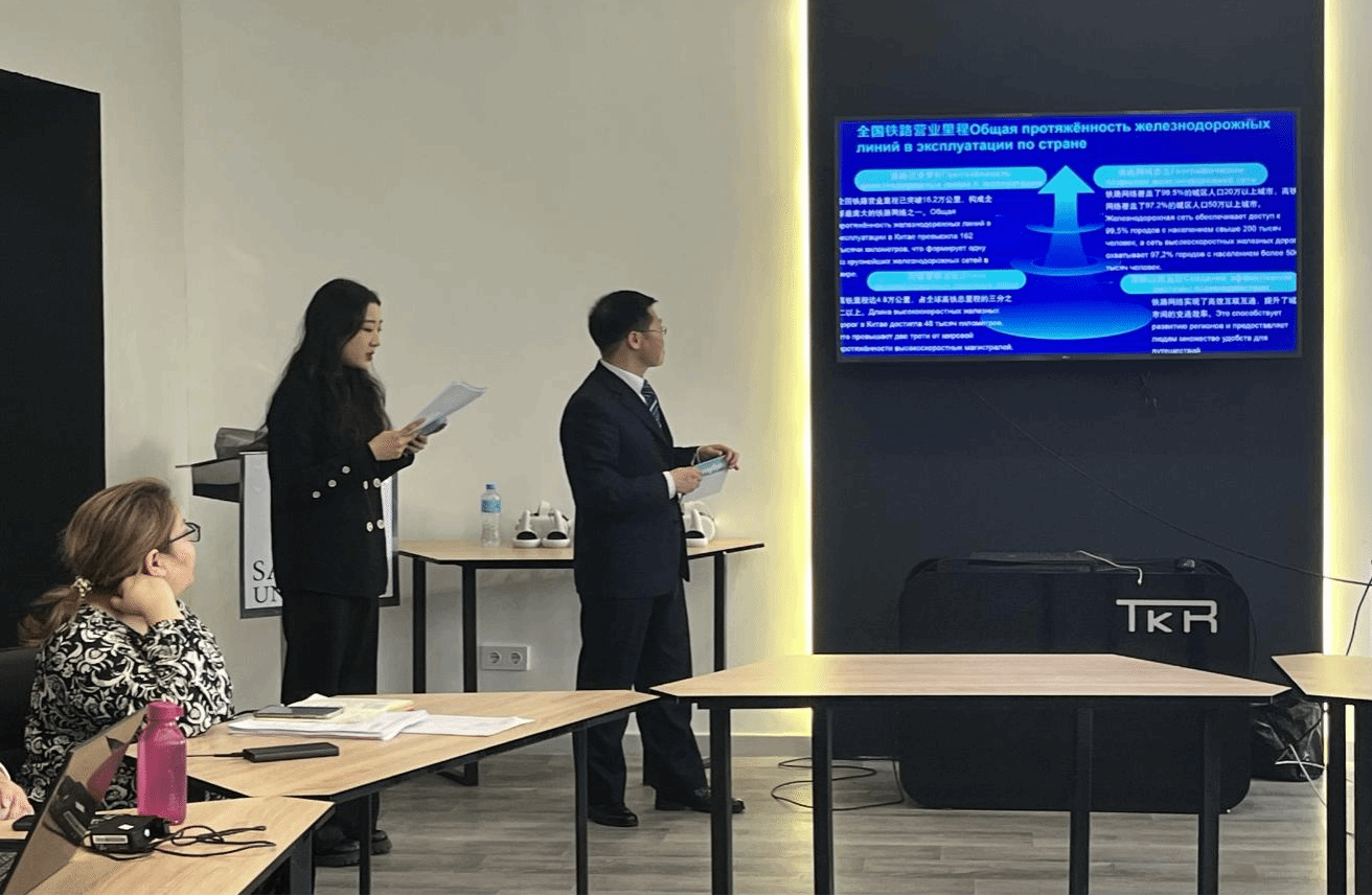 3月12日,在萨特巴耶夫大学开展了轨道交通领域的学术交流会,萨特巴耶夫大学运输与工程学院、机车工程学院等专家及两校学生代表等50余人参加此次报告,学术报告会由萨特巴耶夫大学运输与工程学院院长阿卜杜拉耶夫主持。会上,牵引动力学院副院长林辉围绕高铁运营里程与铁路网规模、旅客与货物运输能力、中国高铁车辆关键技术主要体现以及中国铁路国际合作与交流等四个方面做了有关“中国高铁及铁路发展现状”的学术报告;交通运输学院副教授史歌围绕中国城市化与交通发展背景、中国城市轨道发展现状与核心成就、中国城市轨道发展面临的挑战与解决方案以及中国城市轨道交通未来发展方向与技术创新等四个方面做了“中国城市轨道交通概况及高质量发展方向”的专题报告;萨特巴耶夫大学运输与工程学院教授科波尼亚克围绕哈萨克斯坦铁路发展历史、基本情况、技术瓶颈及未来发展等四个方面做了“哈萨克斯坦铁路概况”学术报告。报告结束后,两校专家就学术报告内容及教材开发、高铁技术及城市轨道交通建设发展及应用、绿色城轨技术及智能控制等领域的科研合作、学生参加世界技能大赛等方面的问题进行了深入探讨。