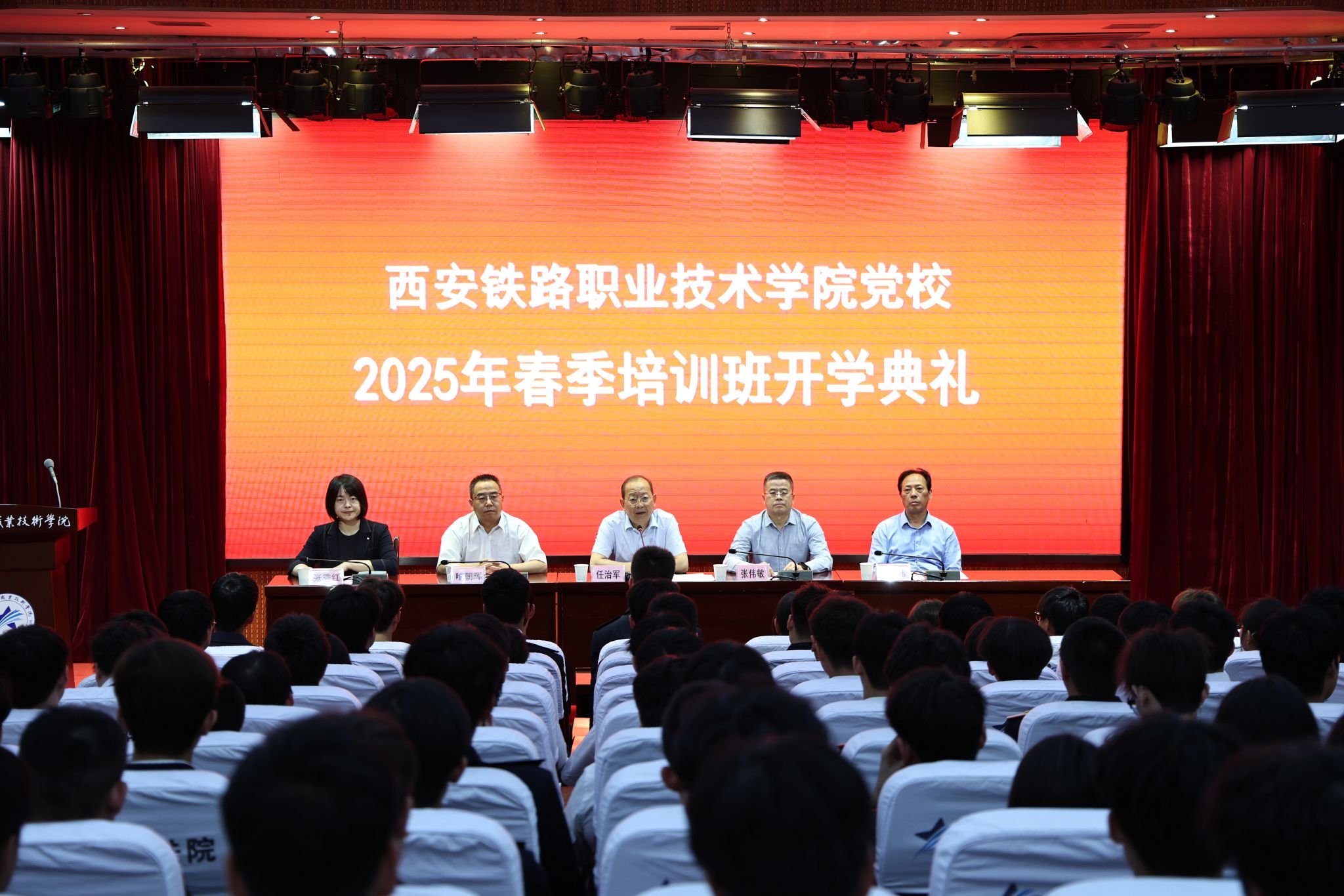 4月22日下午,学院党校2025年春季培训班开学典礼在港务校区办公楼一楼报告厅举行,机电工程学院阶梯教室、自强校区、临潼校区、龙首校区进行了同步直播。学院党委副书记兼党校校长任治军、学院党校校务委员会成员出席了开学典礼。典礼由党委组织部部长张伟敏主持。