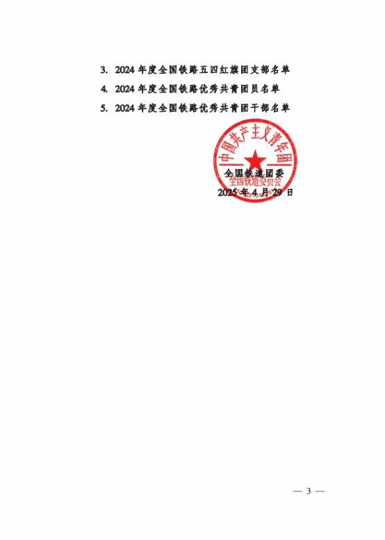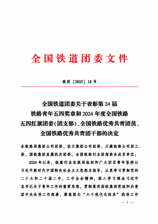 近日,全国铁道团委下发《关于表彰第24届铁路青年五四奖章和2024年度全国铁路五四红旗团委(团支部) 、全国铁路优秀共青团员、全国铁路优秀共青团干部的决定》(铁团〔2025〕18号),对2024年度做出突出贡献和成绩的一批先进集体与个人进行表彰,纽约国际最新官方网站团委荣获“全国铁路五四红旗团委”称号。