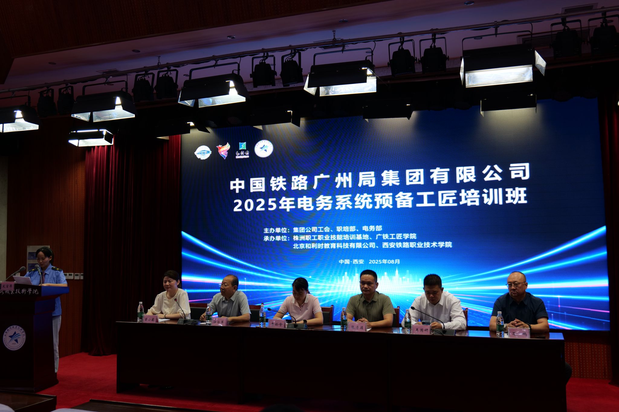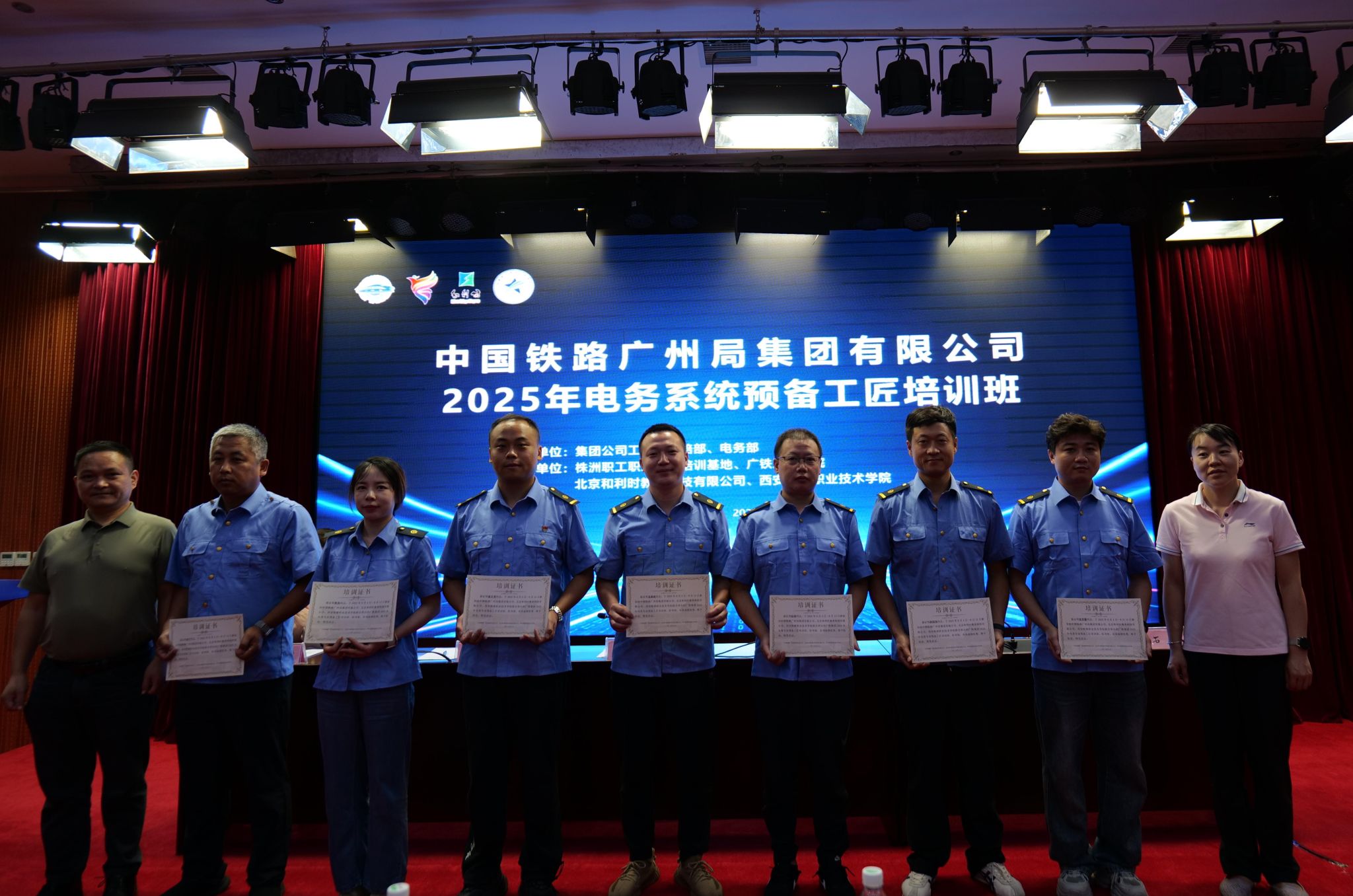 8月15日上午,由中国铁路广州局集团有限公司主办、纽约国际最新官方网站与北京和利时教育科技有限公司联合承办的“中国铁路广州局集团有限公司2025年电务系统预备工匠培训班”结业典礼在西铁院港务校区办公楼报告厅隆重举行。广州局电务部培训主管曹龄兮、和利时教科公司总经理王国研、西铁院党委副书记任治军等领导及全体46名学员出席典礼,共同见证这场赋能铁路高技能人才的匠心之旅圆满收官。典礼由继续教育学院副院长曾小莉主持。