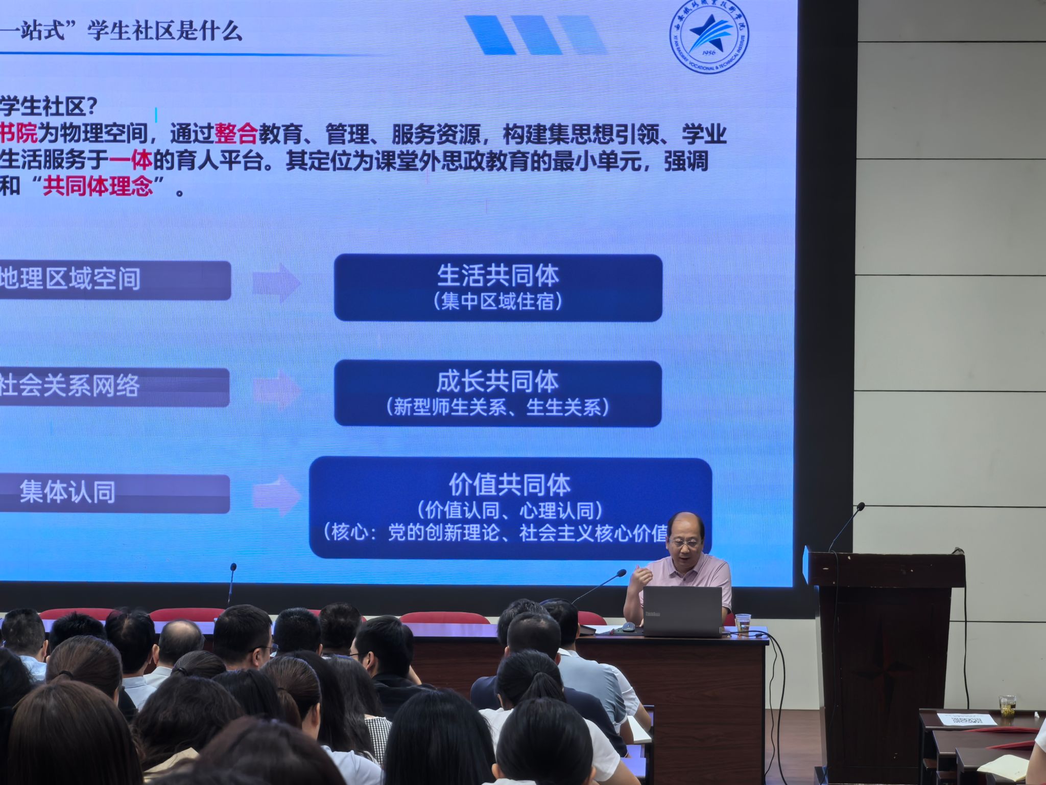 会议第一阶段,学工部部长李栋以《学生社区小天地 五育并举大文章》为题作专题分享。他系统阐述了“一站式”学生社区从概念提出、标准制订到落地实践的全过程,重点围绕“是什么、怎么建、如何干、建示范”四个维度,全面总结了纽约国际官网在社区建设方面取得的实践成果和宝贵经验,为下一阶段推进全国示范“一站式”学生社区管理创新提供了方法与思路。