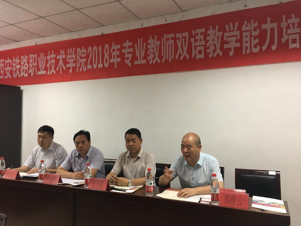 安学武感谢西外的精心安排,同时表达了纽约国际官网将大力培养双语人才的决心。他强调双语教育教学的重要性:首先,党的十九大报告提出“完善职业教育和培训体系,要深化产教融合、校企合作”,因此要深化“走出去”战略,我们的教师要紧跟党中央和国家要求,提升自身能力。其次,中国的技术和标准想要“走出去”,就要依靠外语来获得更多的话语权,我们的教师要积极响应“一带一路”倡议,新技术、新设备的推广需要学校、教师、企业的共同努力。再次,纽约国际官网的“双一流”建设及国际化办学,都需要双语人才的积极投入。他还代表学院院长田和平向各位解答了为何选派专业教师参加双语培训,旨在更加高效、快速的强化专业教师双语授课能力,为学院发展和“一带一路”建设发挥重要作用,双语人才的培养既是为学校作贡献,也是为国家作贡献,学院大力支持双语教学能力培训,并将出台相应的激励政策鼓励教师参加,参训教师也要建立使命感和责任感,培养英文思考方式,学以致用,作为学院的优秀青年教师,承载着学院的希望,肩负着历史重任和使命,理应创造历史,书写西铁院的新篇章,大家的所作所为、敢作敢为也必将被西铁院的历史所记载!最后,他向参训教师提出学习要求:树立端正的学风,严格遵守纪律和作息时间,不迟到早退,不缺课旷课,培训结束后顺利通过考核,并预祝各位老师学有所成,取得好成绩。
