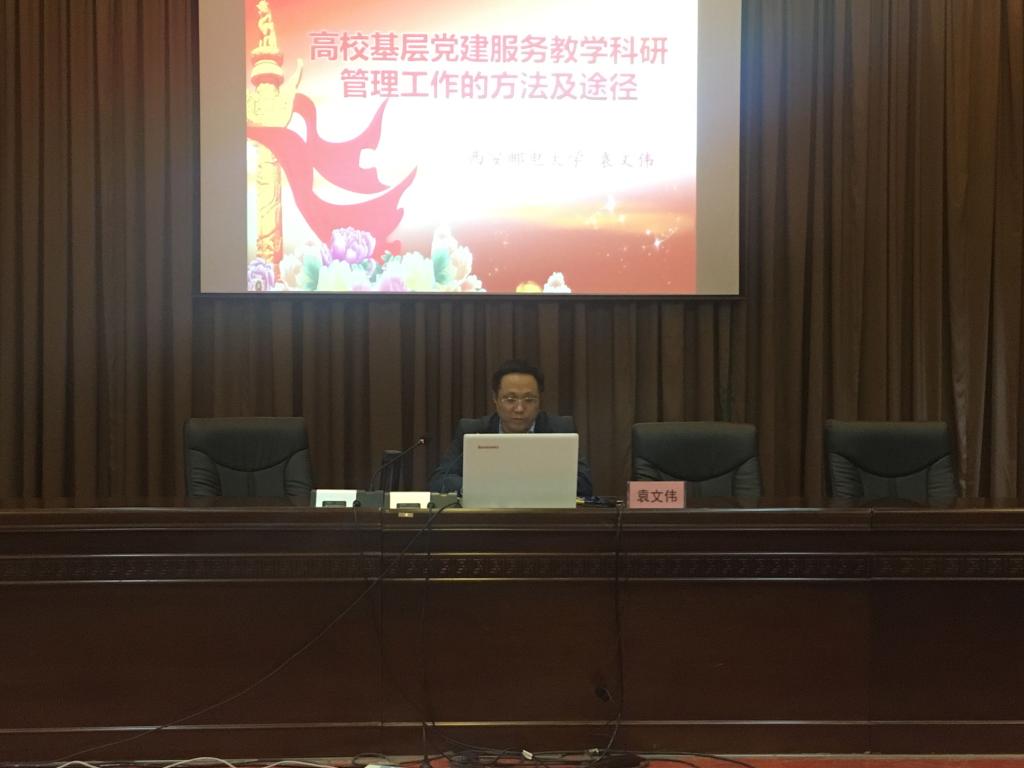 培训内容主要分为六个方面:一是严肃党内组织生活,如何用好党建经费、党费,做好发展党员工作;二是党支部书记工作职责及加强新形势下高校教师党支部书记“双带头人”培育;三是高校基层党建服务教学科研管理工作的方法及途径;四是以党的十九大精神为指导认真学习贯彻发展党员工作细则确保发展合格党员;五是对新修订的《中国共产党纪律处分条例》进行解读;六是组织所有参训人员赴西安交通大学西迁精神展馆集中参观。