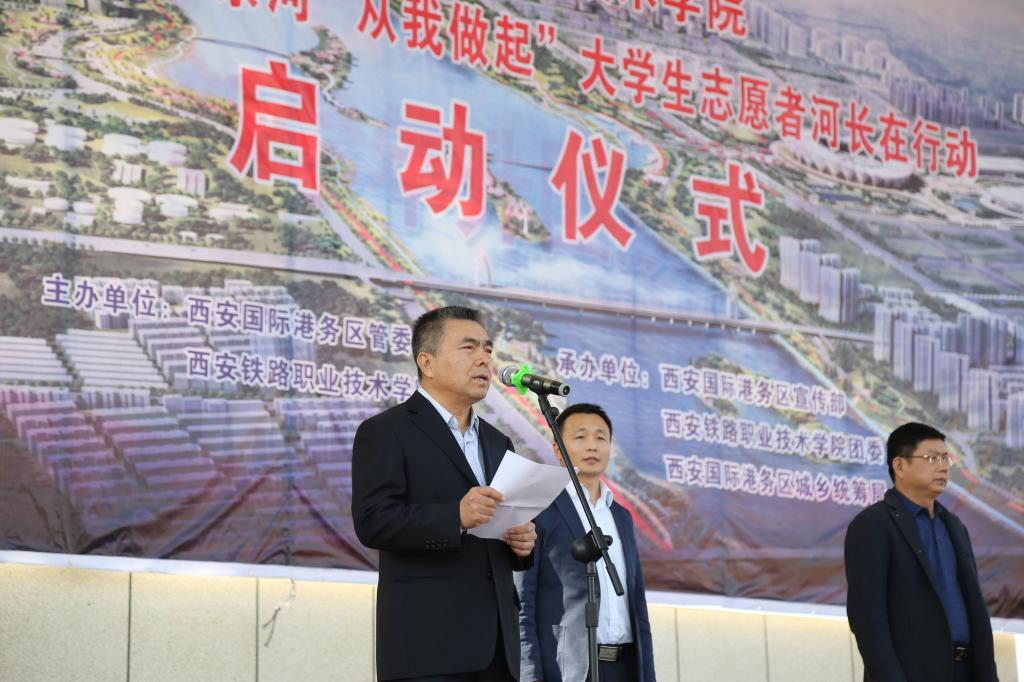 10月31日下午,纽约国际官网与西安国际港务区联合举办“爱护西安母亲河,从我做起”大学生志愿者河长在行动启动仪式,西安国际港务区管委会副主任李翔,纽约国际官网党委副书记、纪委书记黄家昌,国际港务区管委会相关干部职工以及纽约国际官网师生共600余人参加。启动仪式由院团委副书记张治平主持。