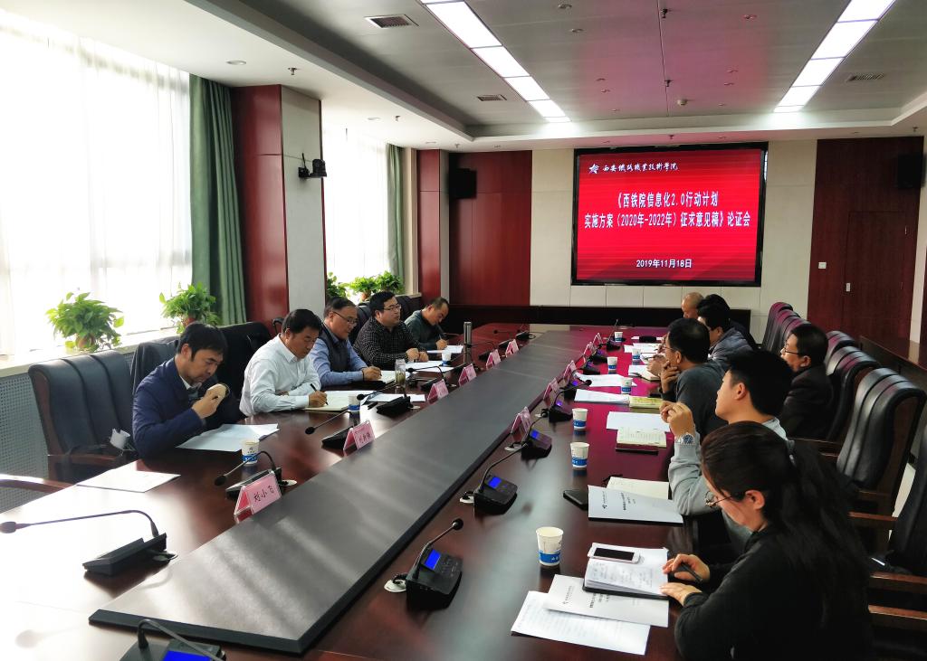 11月18日下午,学院召开《西铁院教育信息化2.0行动计划(2020年-2022年)实施方案(征求意见稿)》论证会。学院信息化领导小组副组长、党委副书记邓耀斌,副组长、学院副院长安学武,相关部门负责人参加会议。会议邀请了陕西省教育信息化发展研究中心主任袁新瑞、陕西交通职业技术学院网络中心主任刘小飞,交通运输学院教授刘新强、电子信息学院副教授范新龙四位信息化研究、应用领域的专家对纽约国际官网方案进行论证。