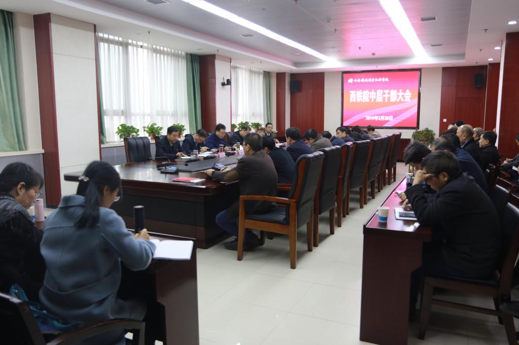 2月28日上午,学院召开新学期处级干部会议,回顾总结2018年及寒假工作成效,安排部署2019年工作任务,动员大家迅速收心归位、凝神聚力、恢复秩序,以奋斗者的姿态推动2019年精彩开局、全面起跑。全体院领导参加会议,党委副书记邓耀斌主持会议。