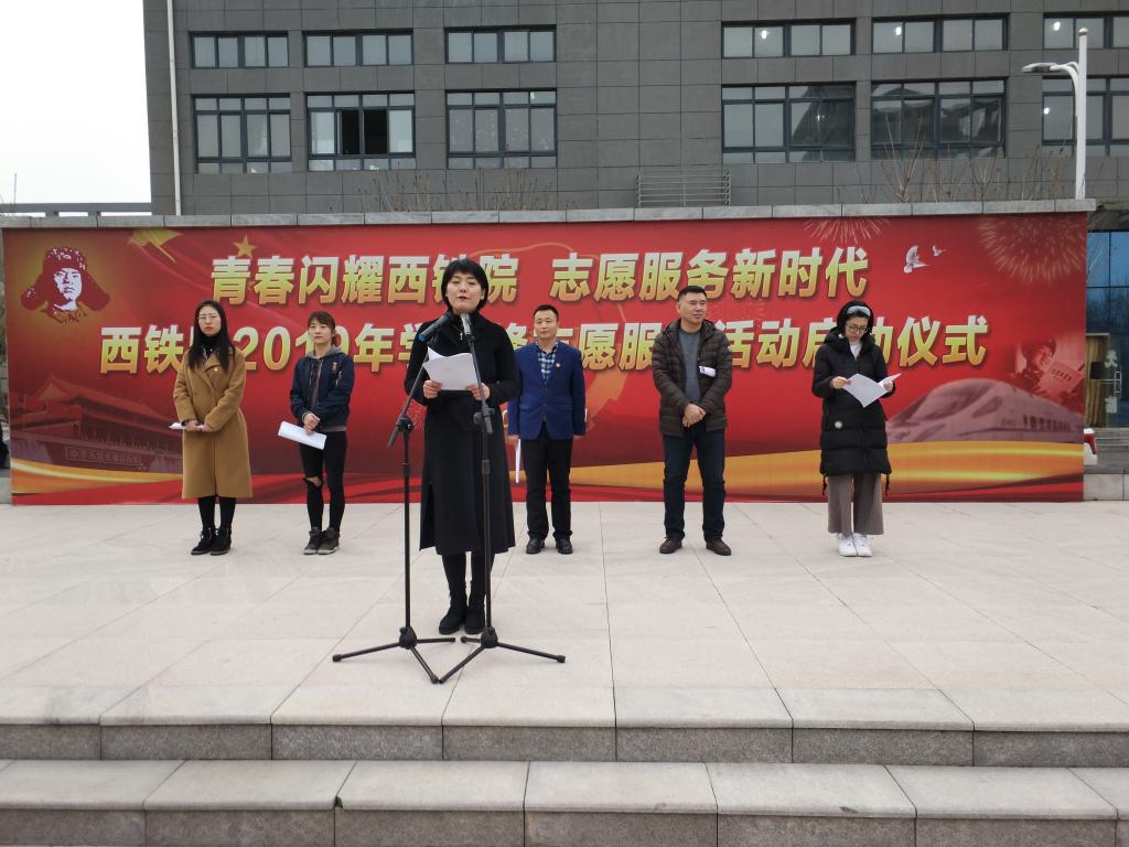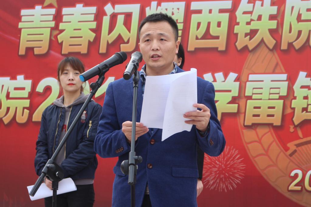 活动开始,200余名志愿者身穿红马甲列队于小舞台与老师们共同合唱《学习雷锋好榜样》与《团歌》,熟悉的旋律与嘹亮的声音响彻校园。首先,张治平宣读了《关于全年开展“青春闪耀西铁院 志愿服务新时代”学雷锋志愿服务活动的通知》,并向志愿者们做动员号召:要努力向雷锋同志学习,时刻将雷锋精神牢记于心,并付诸行动,从自身做起,用实际行动弘扬雷锋精神,无私奉献,乐于助人,奉献爱心,把雷锋精神融入到学习、生活以及未来的工作中,自觉践行、发扬社会主义核心价值观,争做新时代文明青年。随后,学院志愿者代表罗猛同学带领全体志愿者们进行宣誓,“我愿意成为一名光荣的青年志愿者。我承诺:尽己所能,不计报酬,帮助他人,服务社会。践行志愿精神,传播先进文化,为建设团结互助、平等友爱、共同前进的美好社会贡献青春力量。”最后,张治平宣布学院2019年“青春闪耀西铁院 志愿服务新时代”学雷锋志愿服务活动月正式启动。