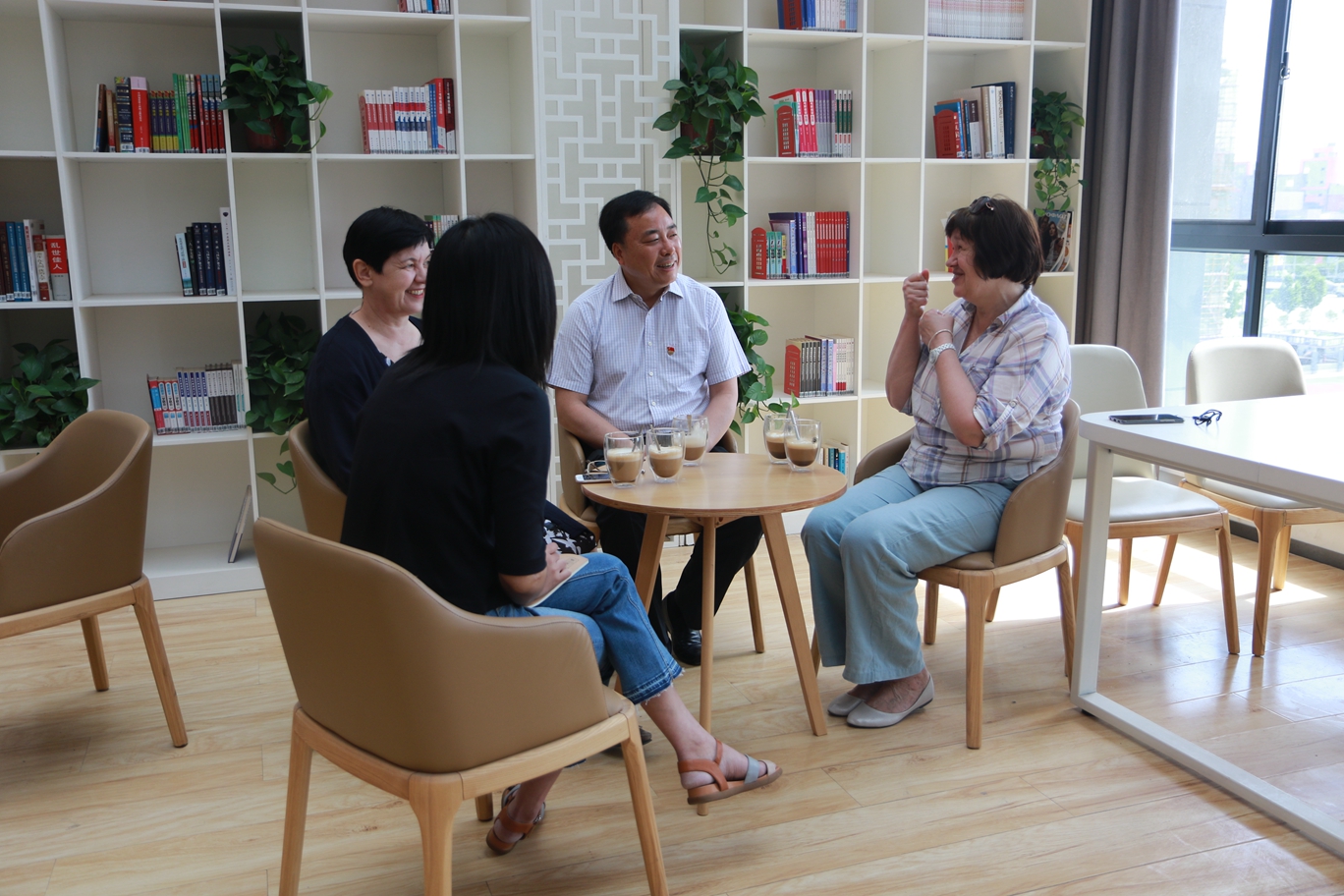 6月3日,学院党委书记施利民深入学院国际交通学院,与俄罗斯藉外教伊诺泽姆采娃·拉丽萨和穆尔津娜·柳博芙亲切座谈。