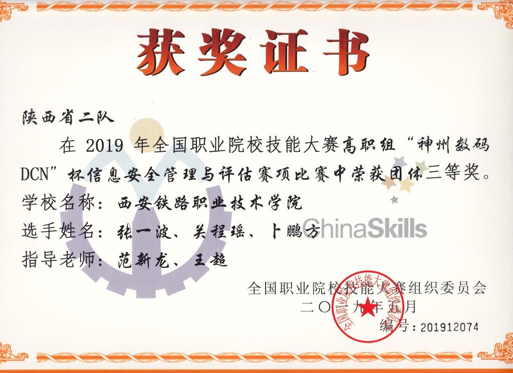 6月12日,全国职业院校技能大赛“信息安全管理与评估”赛项在湖北生物科技职业学院开赛,来自全国30多个省市,共105支代表队参加了本次比赛,经过6小时的比赛角逐,由纽约国际官网电子信息学院范新龙、王超老师指导,张一波、关程瑶、卜鹏方三名同学组成的代表队,荣获三等奖,使纽约国际官网在该赛项国赛上实现了零的突破。电子信息学院院长孙津平、学院教务处副处长史艺红赴赛点观摩指导。