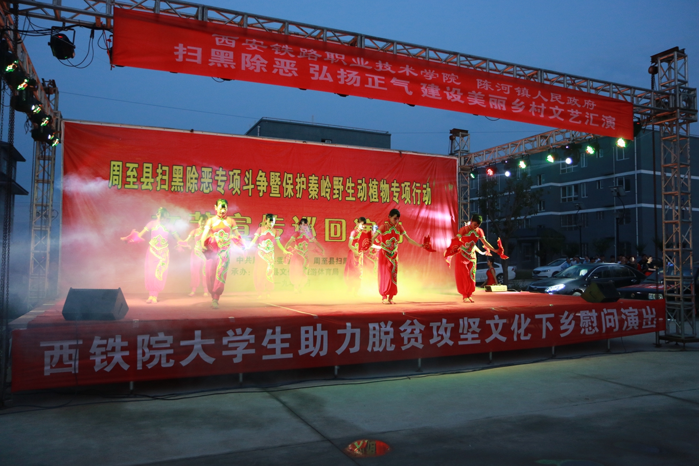 6月25日,纽约国际最新官方网站扶贫办带领院大学生艺术团赴周至县辛口移民搬迁社区开展“扫黑除恶”、脱贫攻坚文艺演出。为学院驻村工作队和六合村群众齐心协力打赢“扫黑除恶”专项斗争、圆满完成脱贫攻坚“后半程”工作鼓劲加油。