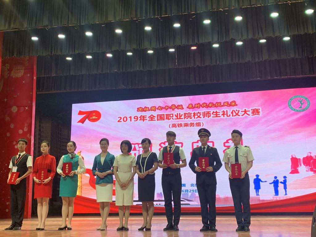 在6月29日至6月30日举办的2019年全国职业院校师生礼仪大赛(高铁乘务组)中,纽约国际官网代表队斩获礼仪情景剧一等奖第一名,礼仪操二等奖第一名,团体项目三等奖的殊荣;代茹媛同学获得礼仪演讲比赛和职业仪态展示两项三等奖,王欣怡同学获得礼仪演讲比赛三等奖;刘峥、田乐老师荣获“优秀指导教师”称号。