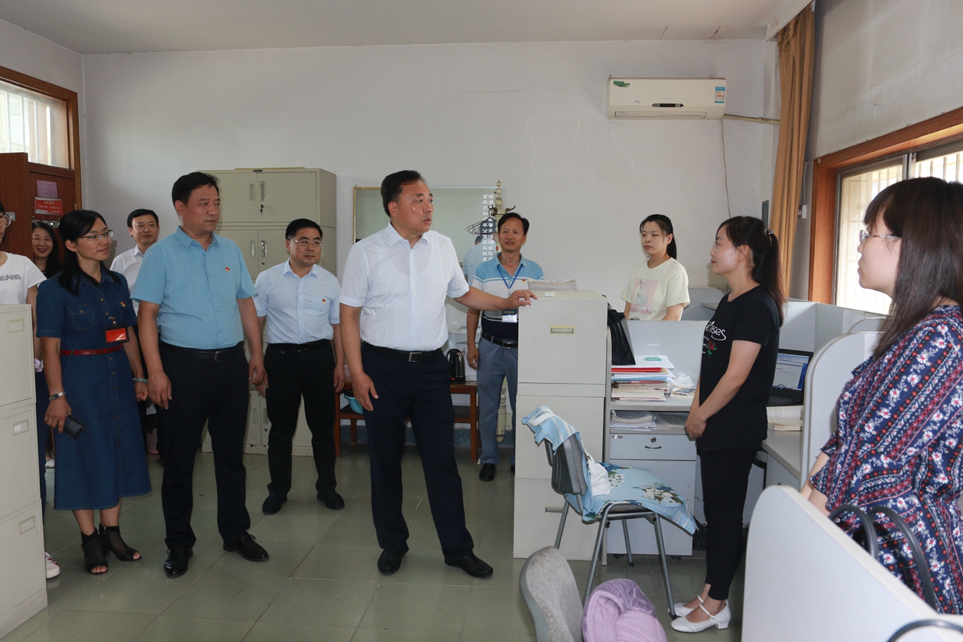 每到一处,施利民首先来到教师办公室看望慰问一线教师。分别与全国优秀教师赵岚教授、工程测量国赛四连冠指导教师张晓雅教授、铁道信号教研室主任冯国良副教授、首届陕西高校思政课教学标兵王晓丽老师及新入职的常艳婷博士等深入交谈,对他们在工作中取得的成绩和获得的荣誉表示祝贺,并详细了解他们的教学、备赛、科研情况,希望他们能够再接再厉,为学院发展做出更多更大的贡献。