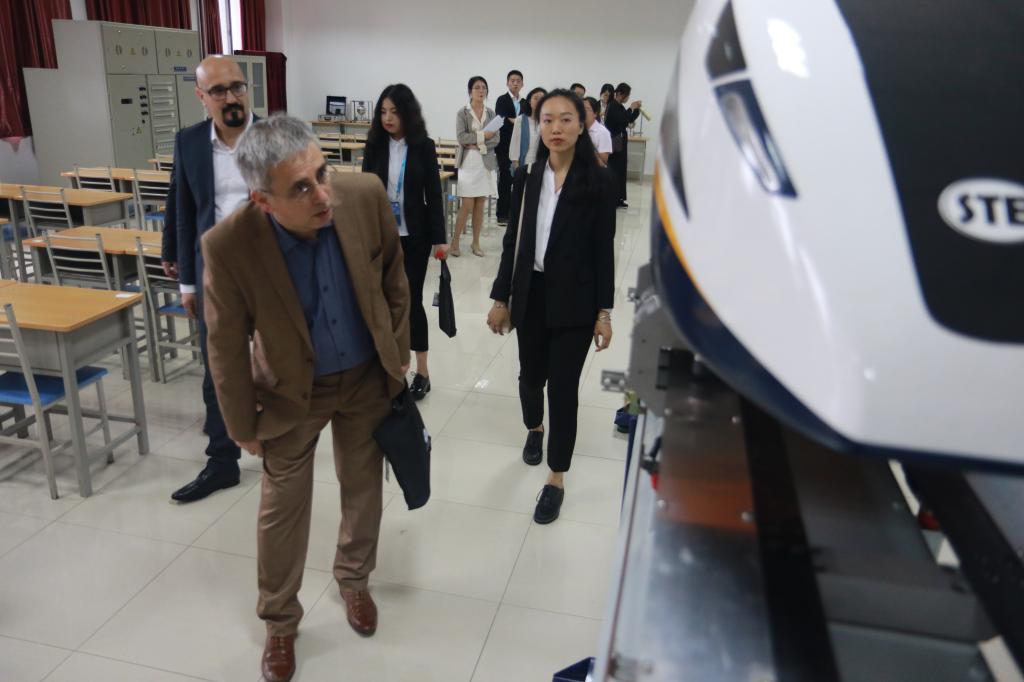 随后,为了便于翻译和参观,代表团分为三组,兴致勃勃的依次参观了电气工程学院、牵引动力学院和机电工程学院的实训室和实验设备。党委宣传部部长张家琪、电气工程学院院长李栋、牵引动力学院书记和晋秦、院长李益民、机电工程学院院长代礼前陪同参观。基础部英语教研室、国际交通学院俄语教研室负责英语和俄语讲解的翻译工作。