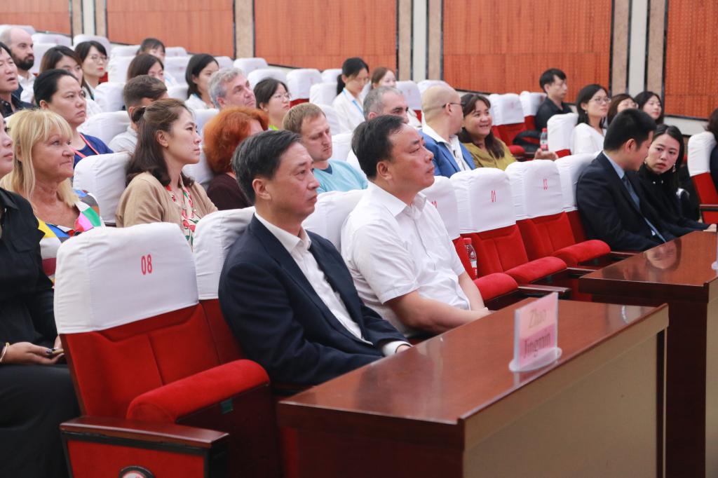 在阶梯教室,党委书记施利民会见了全体代表,并代表全校师生欢迎代表团的到来,副院长赵六杰主持见面会并致词。随后,代表团中来自韩国、吉尔吉斯斯坦、芬兰、尼泊尔、瑞典、希腊、加拿大、澳大利亚、俄罗斯等10多个国家的友好城市及友好交流城市代表约50名外宾共同观看了纽约国际官网的宣传片。