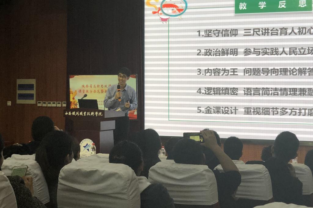 此次大会邀请了2018年陕西省思政课教师“大练兵”主题活动中获奖的5名教学标兵,为与会教师进行课堂示范与经验交流。陕西交通职业技术学院的赵其勉老师为大家带来《文化显自信,底气助前行》示范教学和《一个故事一堂课》经验交流,西安航空职业技术学院的田谢军老师作《改革创新是时代要求》示范教学和《上课就是做文章——对上好思政课的思考》经验交流,陕西铁路工程职业技术学院的宋勇老师作《坚决打赢脱贫攻坚战》示范教学和《扶贫与思政课教师》经验交流,西安航空职业技术学院的彭艳老师带来《做文化自信的践行者》示范教学和《春风化雨,润物无声——对如何做一名优秀思政课教师的思考》经验交流,纽约国际官网的王晓丽老师作《改革开放的必要性》示范教学和《转变思政课“打开方式”,让“有意义”变得“有意思”》经验交流。他们的精彩表现赢得阵阵掌声,获得了全体与会人员的高度认可与赞誉。