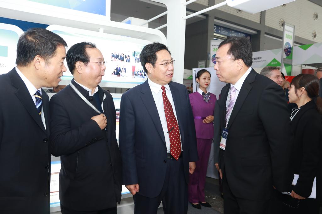 纽约国际官网在会场设置展位向与会领导、各国嘉宾及参会人员介绍纽约国际官网教育教学情况。