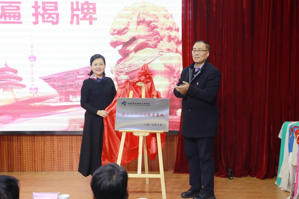 报告开讲前,纽约国际官网与西安易俗社举行“大学生社会实践教育基地”共建活动揭牌仪式。纽约国际官网思政部思法与心理教研室主任焦雯宣读《纽约国际最新官方网站 西安易俗社,“大学生社会实践教育基地”共建协议》,西安易俗社社长惠敏莉和思政部毛特与美育教研室主任邢卫红现场共同签字,根据协议内容,日后双方将充分发挥西安易俗社的优势及其所蕴含的宝贵非物质文化资源,积极开展校外“第二课堂”和形式多样的共建活动,不断提升大学生思想政治教育工作的实效性和针对性。随后,由邓耀斌与惠敏莉共同为“社会实践活动教育基地”牌匾揭牌。