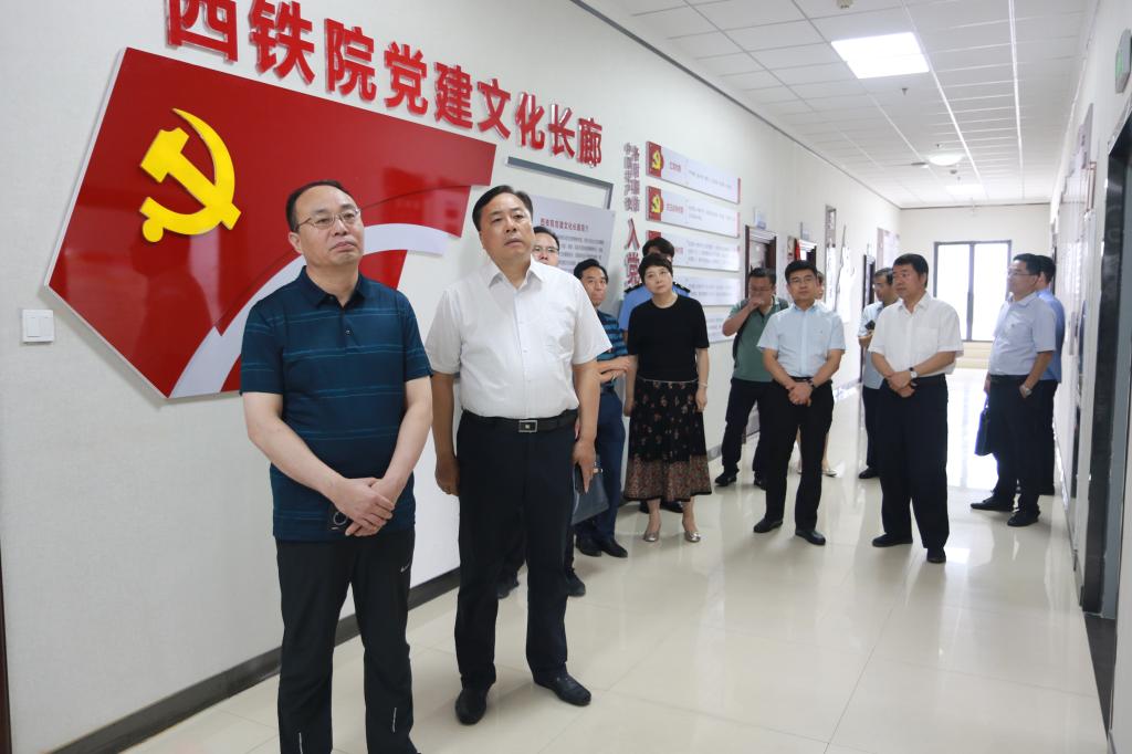 于忠武一行先后参观了学院党建文化长廊、师生政治生活馆、牵引动力学院相关实训室及轨道交通专业综合演练场。