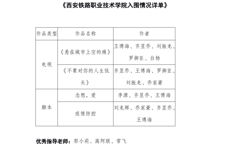 此次征集活动中,纽约国际官网报送的电视类作品《悬在城市上空的痛》《不要对你的人生低头》,全省排名分别为第30、第36名;脚本类作品《念想,爱》《疫情防控》,全省排名分别为第13名、第22名,以上四部作品被评为优秀作品,郭小莉、高阿联,常飞被评为“优秀指导老师”。闭幕式现场,主办方为评选出的优秀作品颁发了荣誉证书和奖杯,并对优秀指导教师进行了表彰。