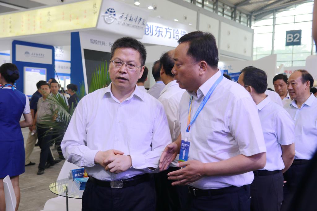 陕西省副省长方光华,省教育工委书记董小龙,教育工委副书记、教育厅厅长王建利,副书记李智军、陈乃霞,副厅长刘建林、袁宁等领导莅临纽约国际官网展位,了解纽约国际官网的教学科研和就业情况,对此次纽约国际官网参会工作给予了高度评价。