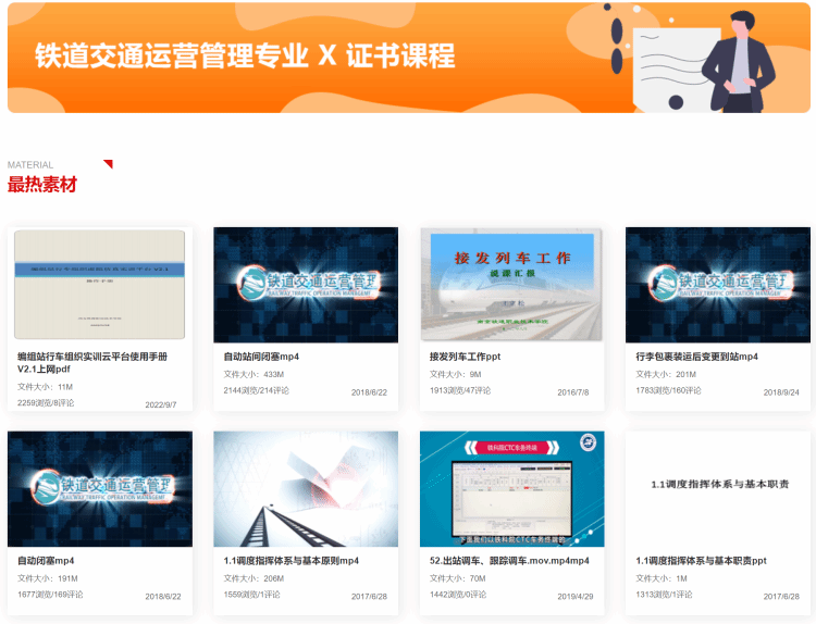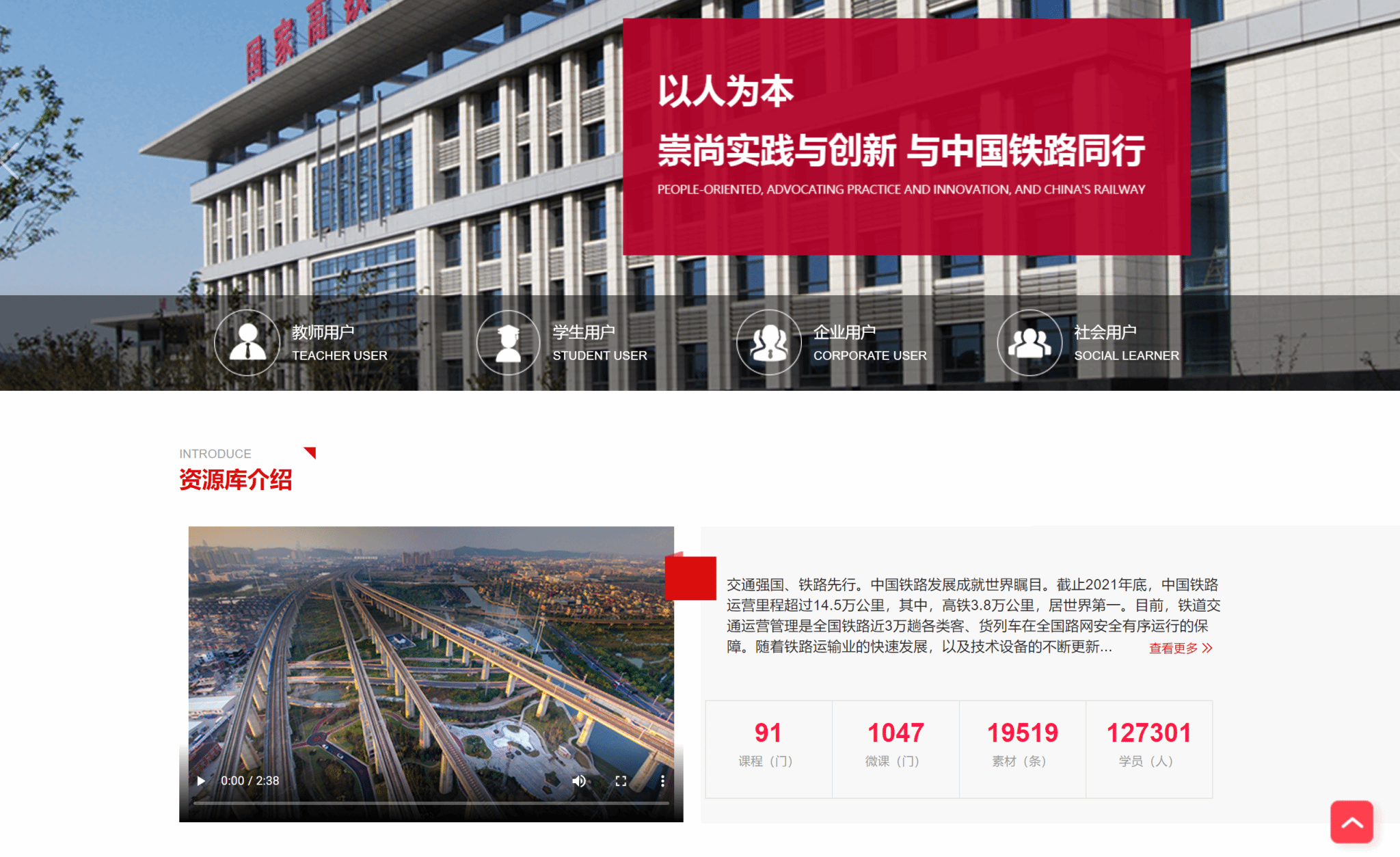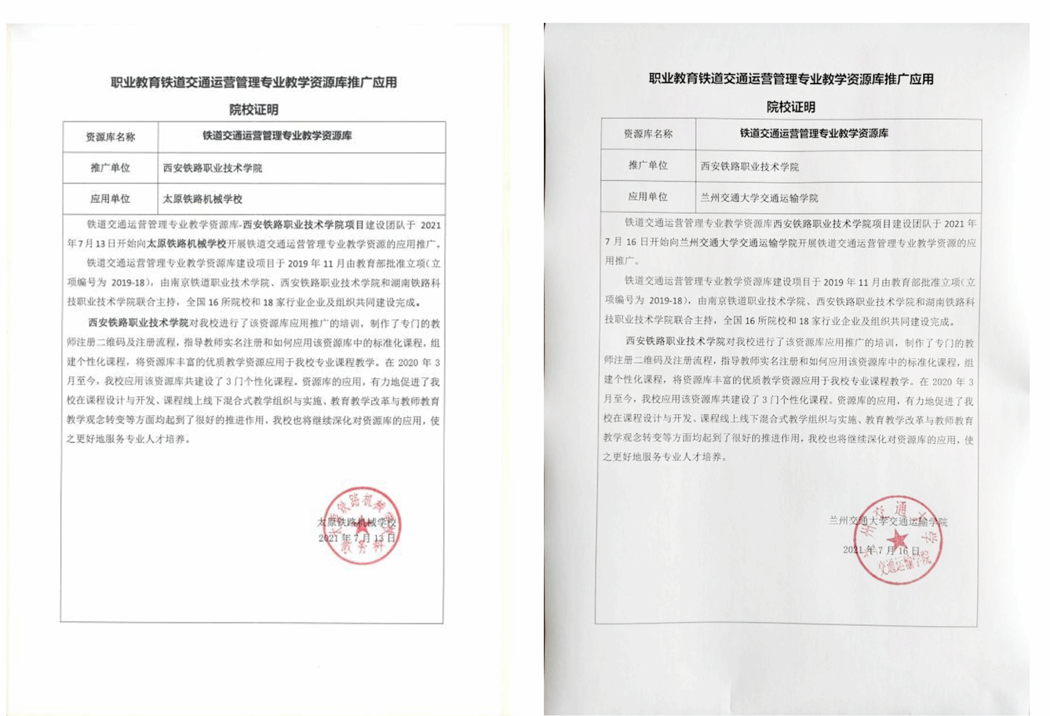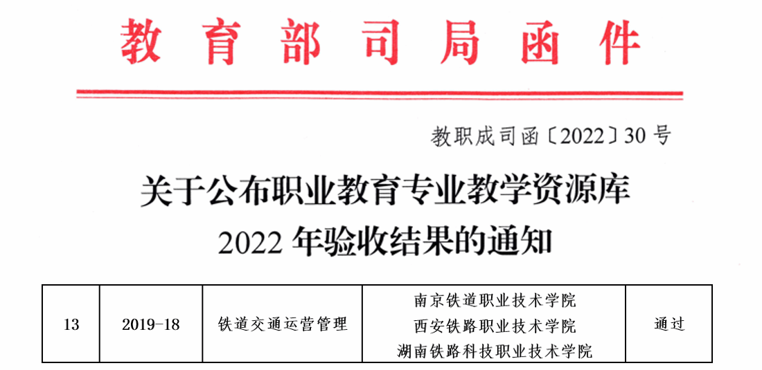经过3年建设应用,2022年12月,纽约国际官网与南京铁道职业技术学院、湖南铁路科技职业技术学院主持的,联合全国18所培养铁路运输行业技术技能型人才的高职院校、20余家铁路运输企业等单位共建,在全国铁道职业教育教学指导委员、中国职业技术教育学会智能轨道交通专业委员会的支持下,铁道交通运营管理专业国家级专业教学资源库顺利通过教育部验收。