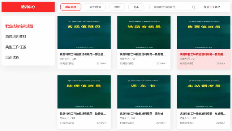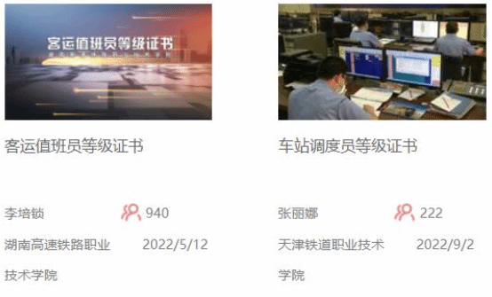 提供车站值班员等6个岗位“国家职业标准”“铁路特有工种技能培训规范”。建成《车站值班员》等4门职业技能等级培训课程。提供12000条职业技能鉴定考试题目。