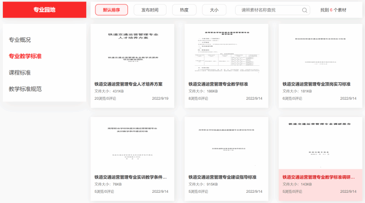 资源库建设团队开发建设“专业人才培养调研报告”“专业简介” “专业教学标准”“专业实训条件建设标准”“顶岗实习标准”“专业建设指导标准”“指导性专业人才培养方案”。通过专业园地引领与指导全国同类专业内涵建设。