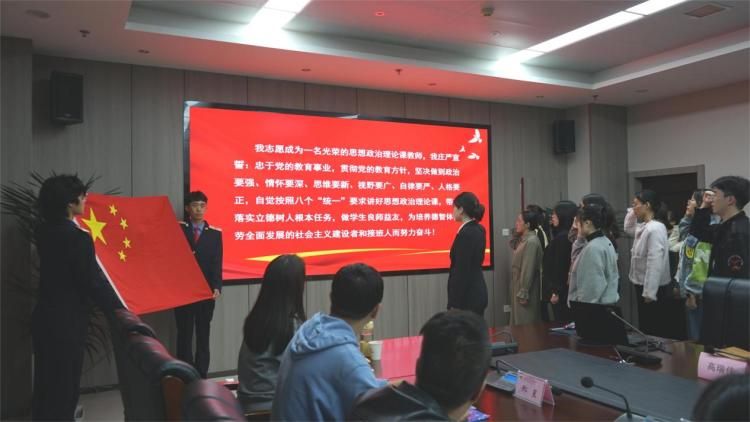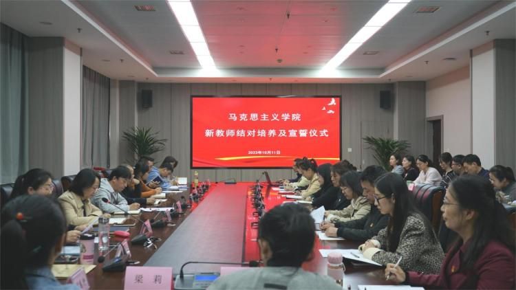 为了不断提高思政课教师的思想理论素养和教学科研能力,促进新进和新转岗思政课教师专业化成长,充分发挥优秀思政课教师“传、帮、带”作用,10月11日,马克思主义学院在港务校区隆重举行了新教师结对培养暨宣誓仪式。学校党委副书记任治军、发展规划处副处长丁洪芬、教务处副处长贠晓晴、马克思主义学院院长张刚毅、副院长邢卫红出席仪式,马克思主义学院全体专兼职教师共同参加,仪式由办公室主任赵建英主持。