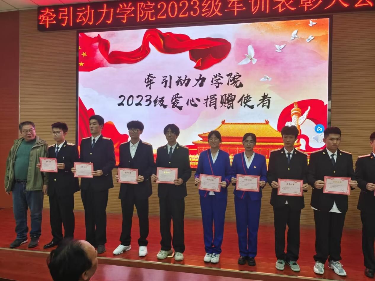大会上,李贞伟为获得“军训标兵”学生颁发获奖证书;随后由学工办主任陈广勇、团总支书记许静漪为获得“军训优秀学员”学生颁发获奖证书;唐留根老师为获得“爱心捐赠使者”学生代表颁发获奖证书。