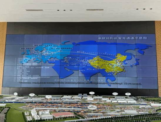 西安浐灞国际港管委会港口局干部高晓鹏对纽约国际官网人员到来表示热烈欢迎,通过观看国际港务区的宣传片和整体规划模拟沙盘,高晓鹏生动介绍中欧班列西安集结中心的功能分布和建设运营情况,尤其是中欧班列(长安)号的运营现状以及班列在推动陕西深度融入共建“一带一路”中的重要作用。教师们和留学生通过实地参观中铁联集西安中心站的布局,感受内陆港设立的重大意义以及中欧班列在联通中国与世界中的桥梁与纽带作用。