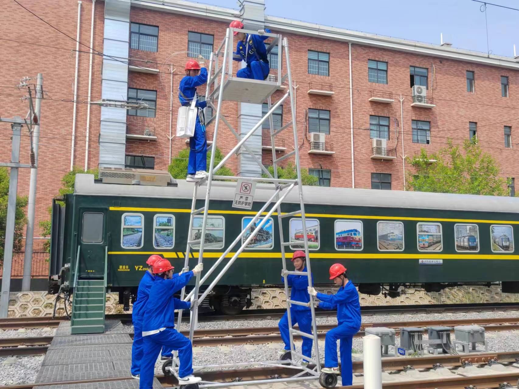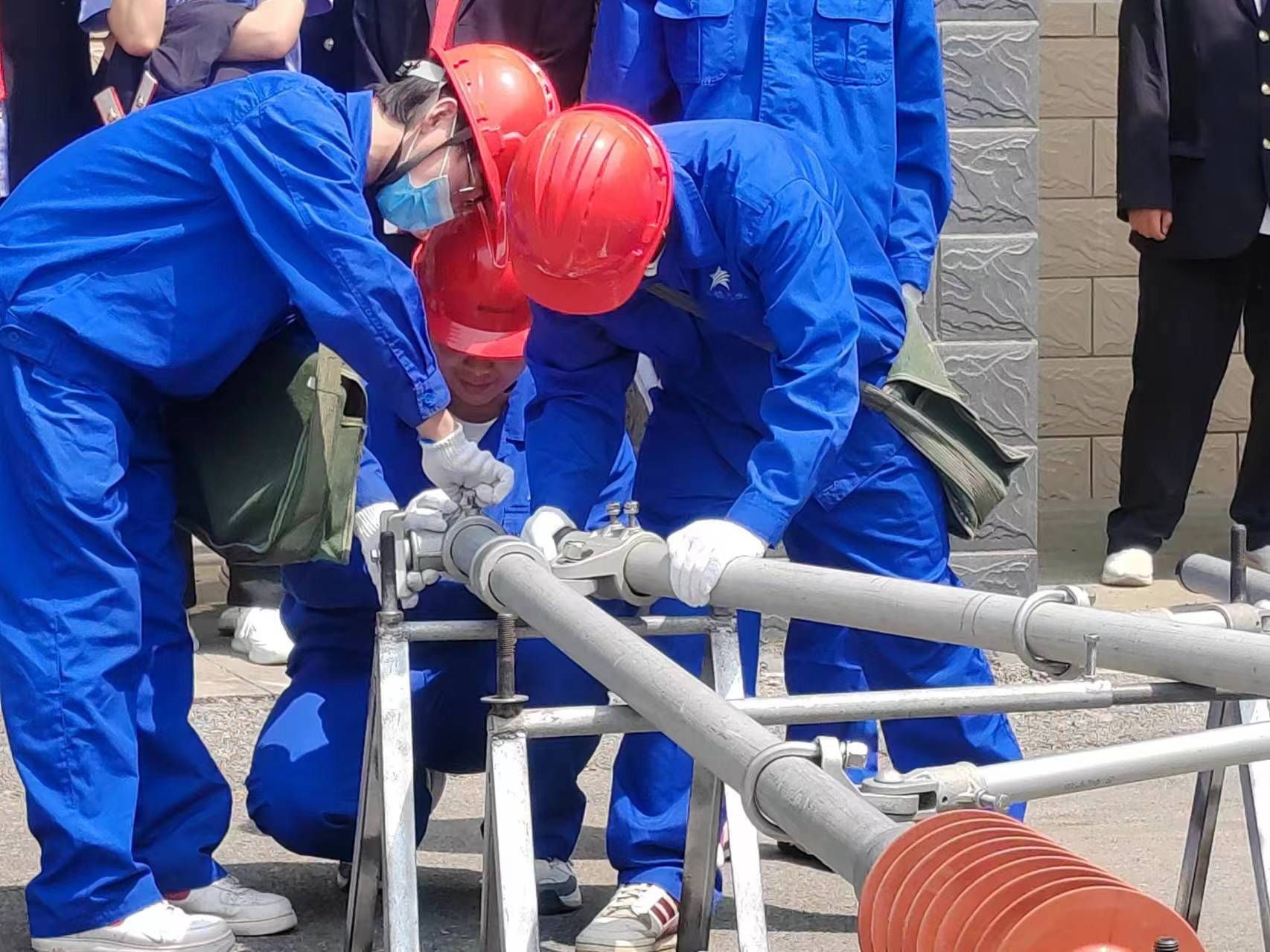 紧凑的开幕式后,全体教师及学生代表赴技能竞赛场地观摩了“高铁腕臂地面组装”、“接触网吊弦检查与更换”两个竞赛项目展示。