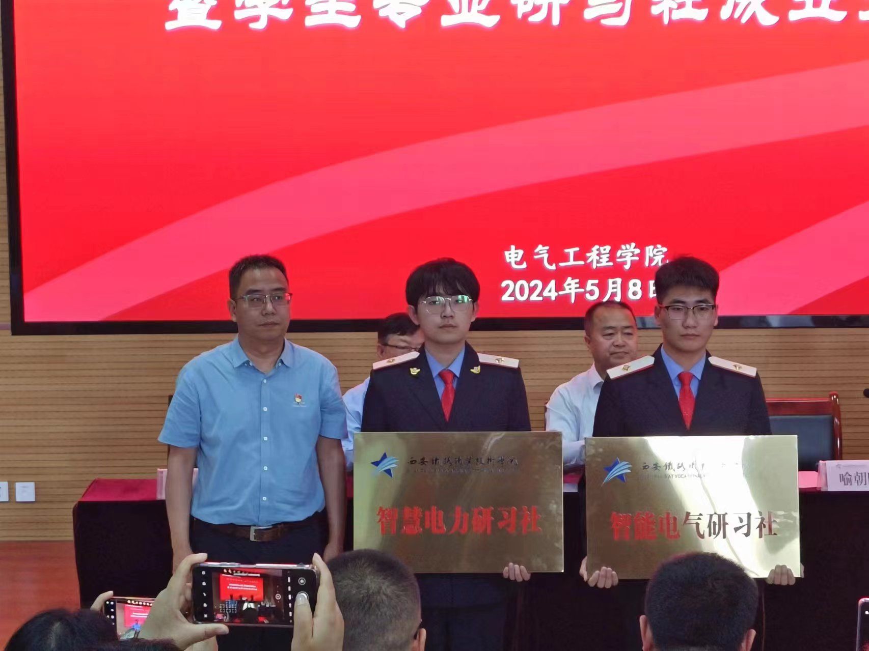书记喻朝晖为“智慧电力研习社”、“智能电气研习社”社长颁发铜牌及聘书。